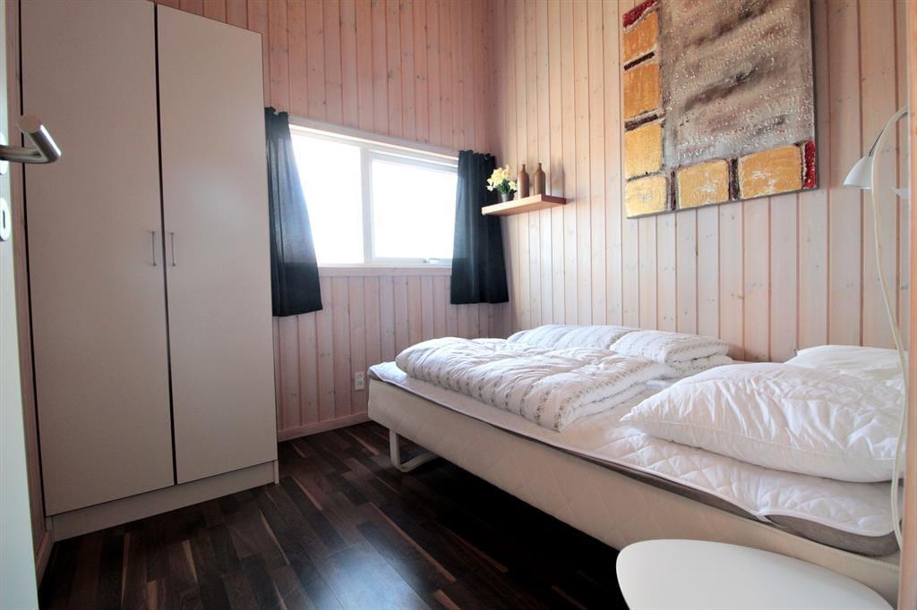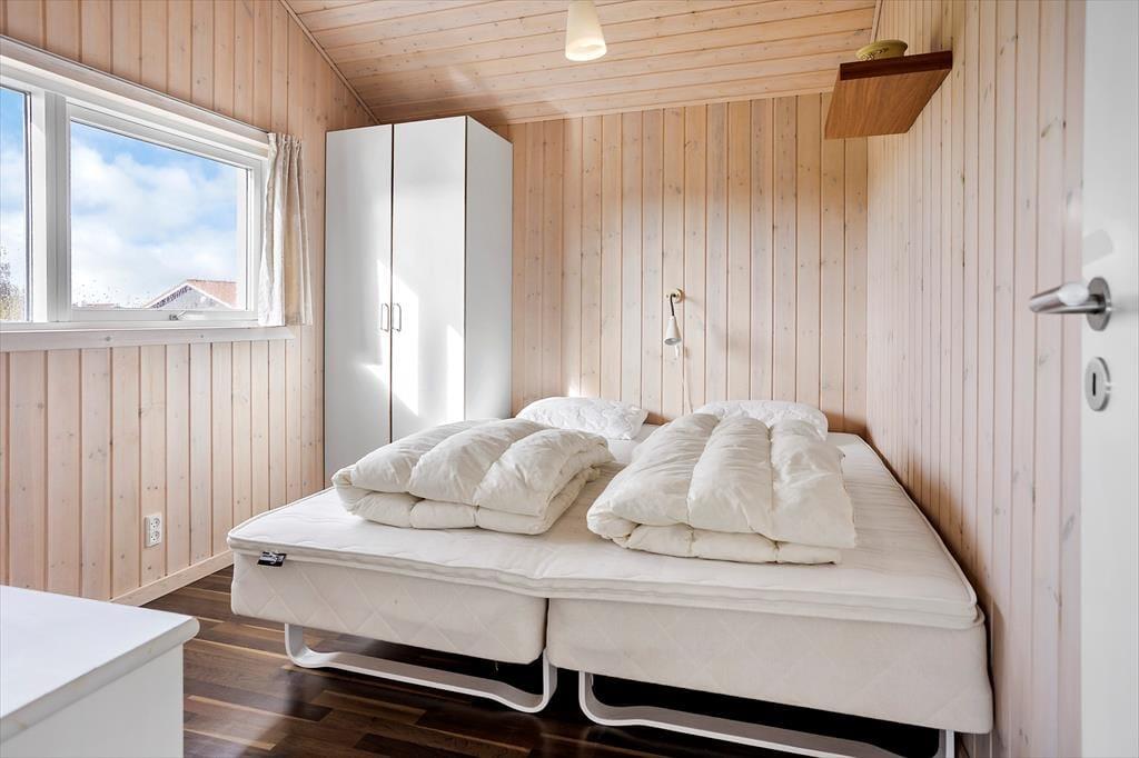 Et godt og yderst velholdt fritidshus, som byder på 4 gode soveværelser, hvoraf 1 af dem er med en dobbeltseng, og de sidste 3 indeholder en halvandenmandsseng, 2 gode badeværelser, hvor det ene indeholder bruser og WC, mens det andet indeholder både Sauna, vaskemaskine, WC og bruser.