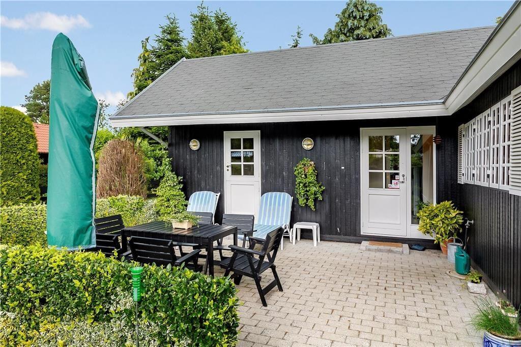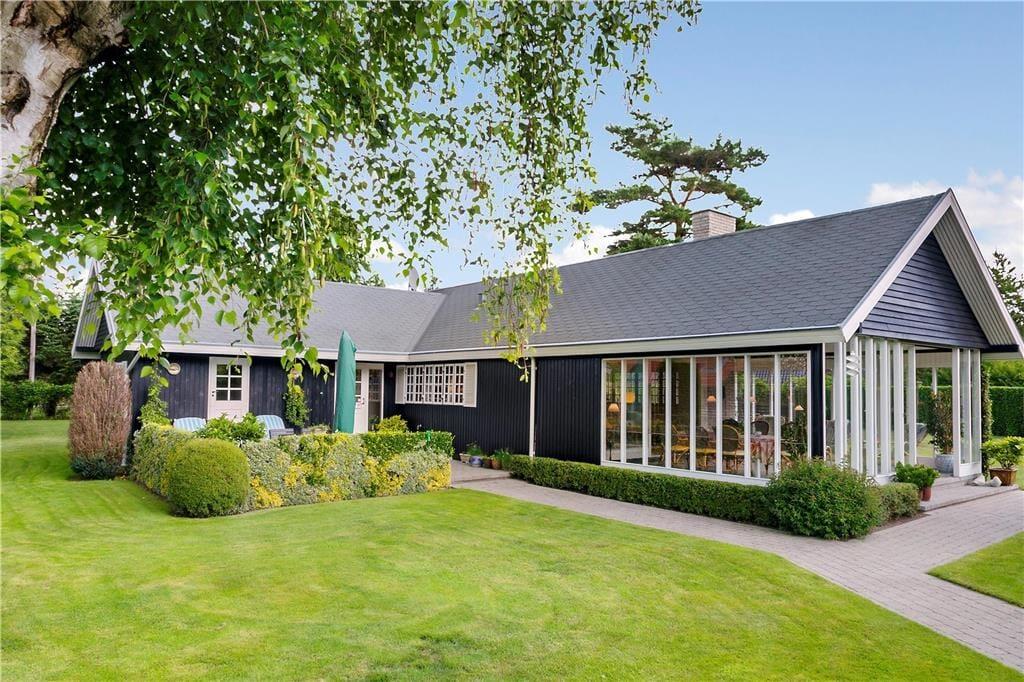 Beliggende på en helt fantastisk grund, med pæne buske og træer, og masser af græsplæne til boldspil og leg.
