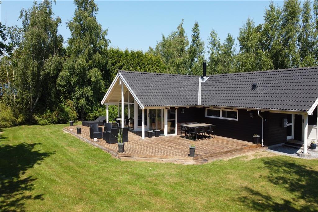 Fritidshuset er beliggende på en 965 kvm stor grund, som er lukket. Der er masser af plads til udendørsaktiviteter på græsset, samt bålplads. Endvidere er der den skønne træterrasse som er perfekt til hyggelige stunder.