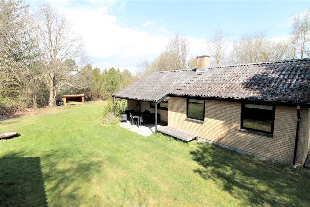 Fritidshuset er beliggende på en 1000 m2 grund. Fritidshuset har en overdækket terrasse, med havemøbler og gril. På grunden er der bål sted og shelter.