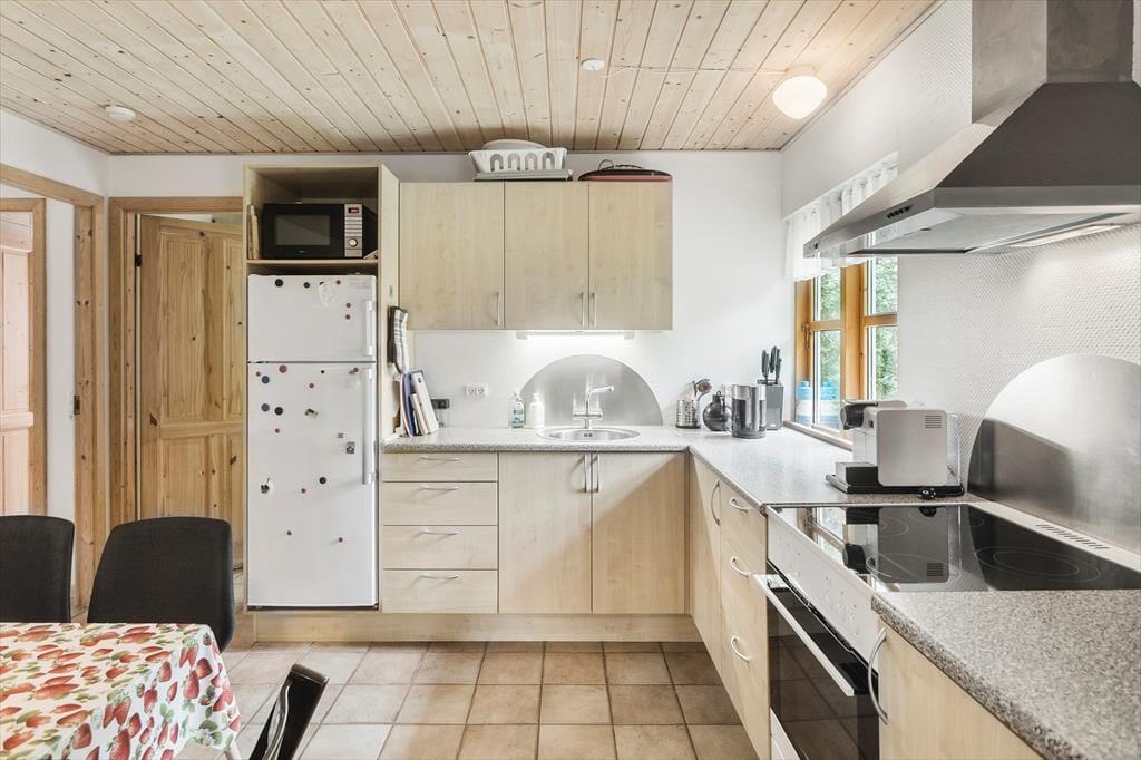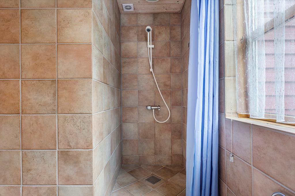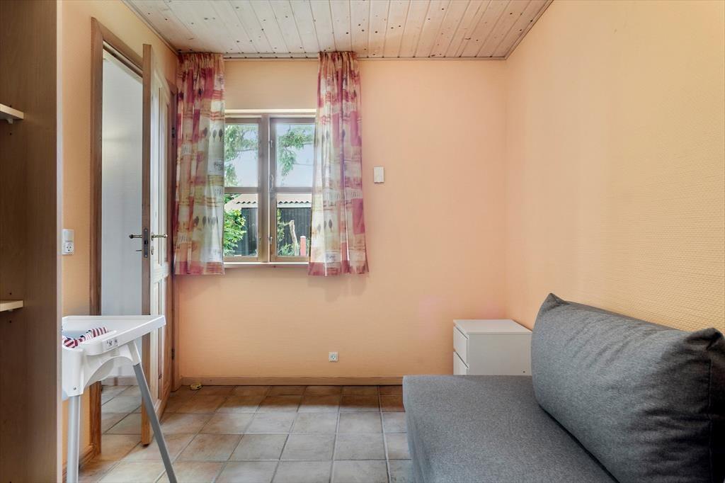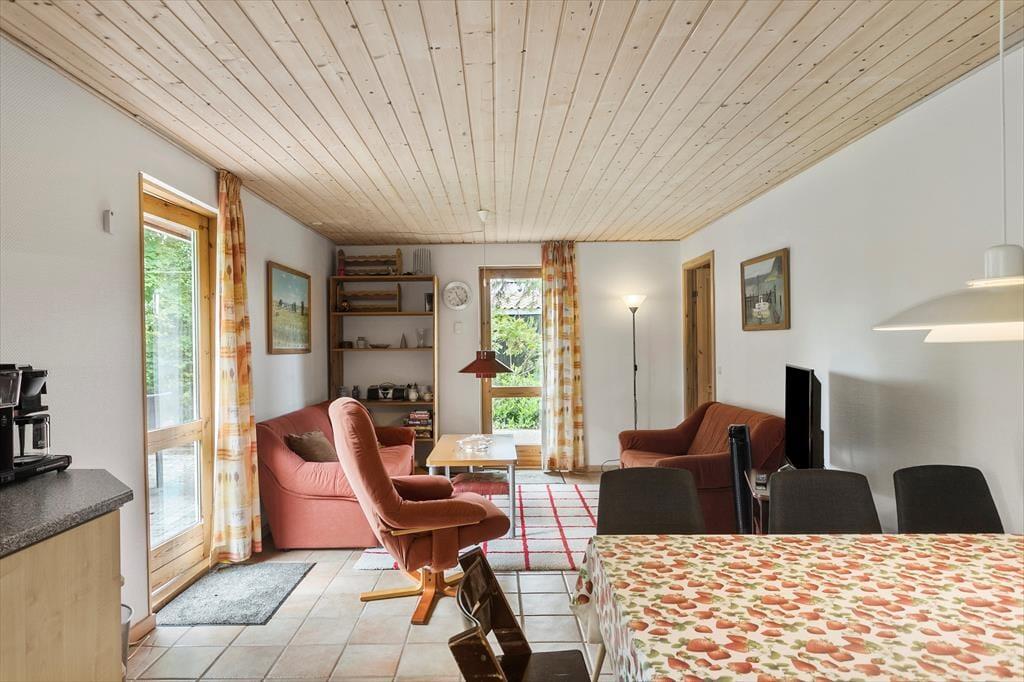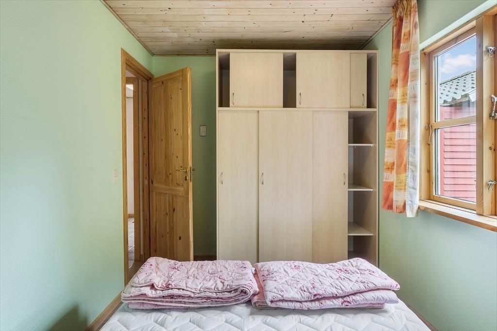 Feriehuset byder på en entre, dernæst et gæstetoilet med wc og håndvask. Et badeværelse med wc, håndvask og bruser. Feriehuset har 3 soveværelser, hvor en er med dobbeltseng, 1 med en køjeseng og 1 værelse med en dobbelt sovesofa. Til sidst husets hjerte, som byder på et dejligt åbent køkken med spiseområde og udgang til stuen. Fra køkkenet og stuen er der udgang til husets skønne terrasse.