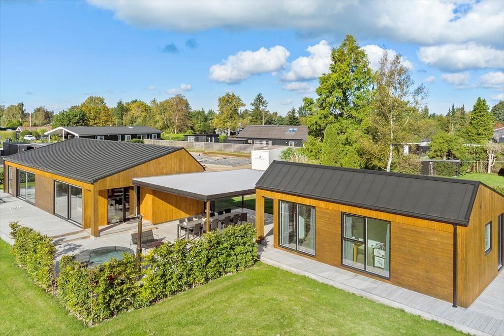 Dette skønne feriehus er beliggende på en 1330 kvm stor grund. Feriehuset har en stor god terrasse, hvor der er liggestole, havemøbler og grill. Terrassen er delvist overdækket. Ved feriehusets terrasse er et vildmarksbad, hvor en masse gode timer kan bruges. Derudover har feriehuset en stor græsplæne, hvor der er plads til en masse til en masse sjov og leg.