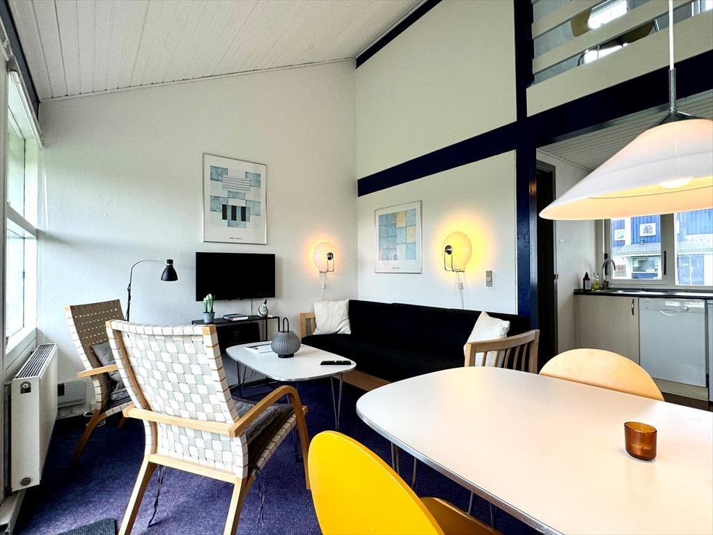 Lejligheden består af entre, fra entreen er der indgang til badeværelse med toilet, bruser og håndvask. Derudover er der et soveværelse på stueetagen hvor der er dobbeltseng, skab, samt udgang til terrasse. På førstesalen er endnu et soveværelse med to enkeltmands senge. Til sidst byder lejligheden på åbent køkken, med udgang til stue og spiseafdeling, hvor der også er udgang til terrassen.