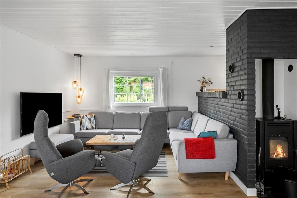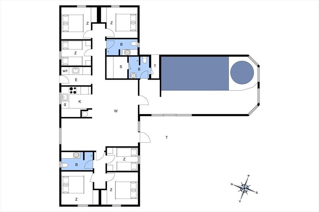 Sommerhuset byder på 6 gode soveværelser, 3 badeværelser, 1 bryggers, og et åbent køkken i forbindelse med opholdsstuen. Fra stuen er der indgang til husets dejlige swimmingpool samt udgang til terrassen og haven.