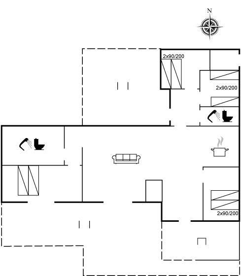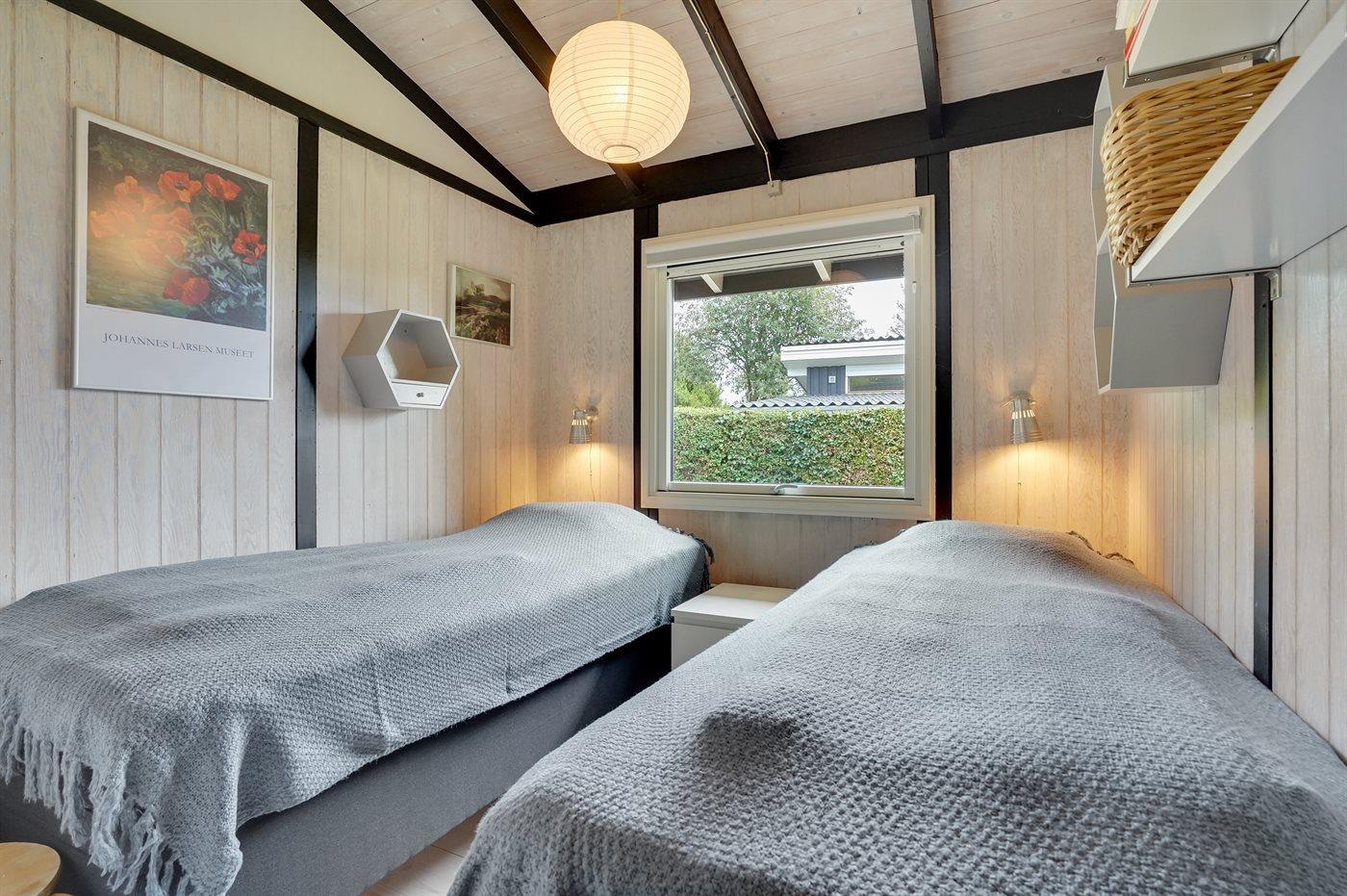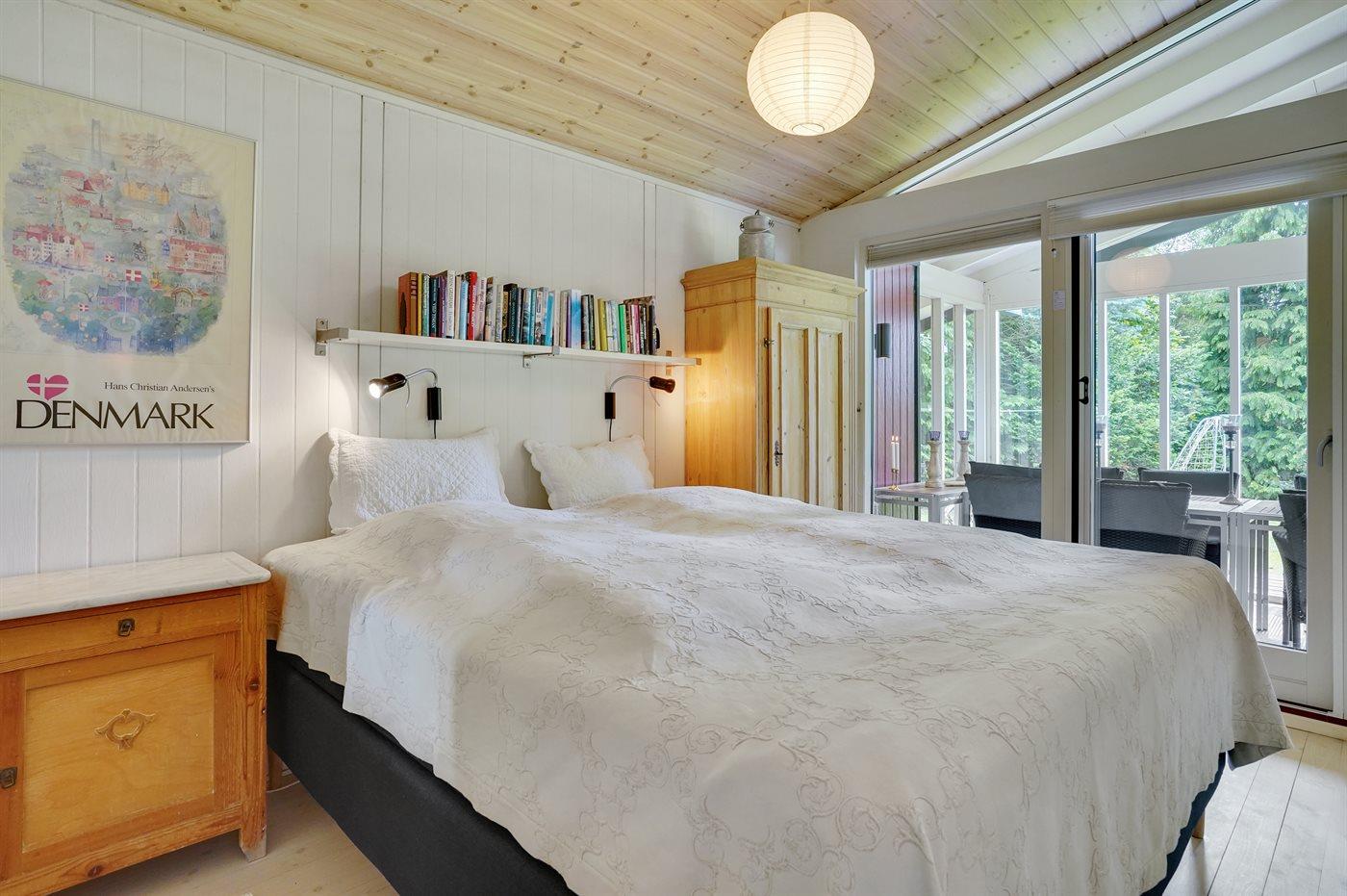 Der er i alt 4 soveværelser. Sovepladserne fordeler sig på: 6 sovepladser i dobbeltsenge. 2 sovepladser i enkeltsenge.