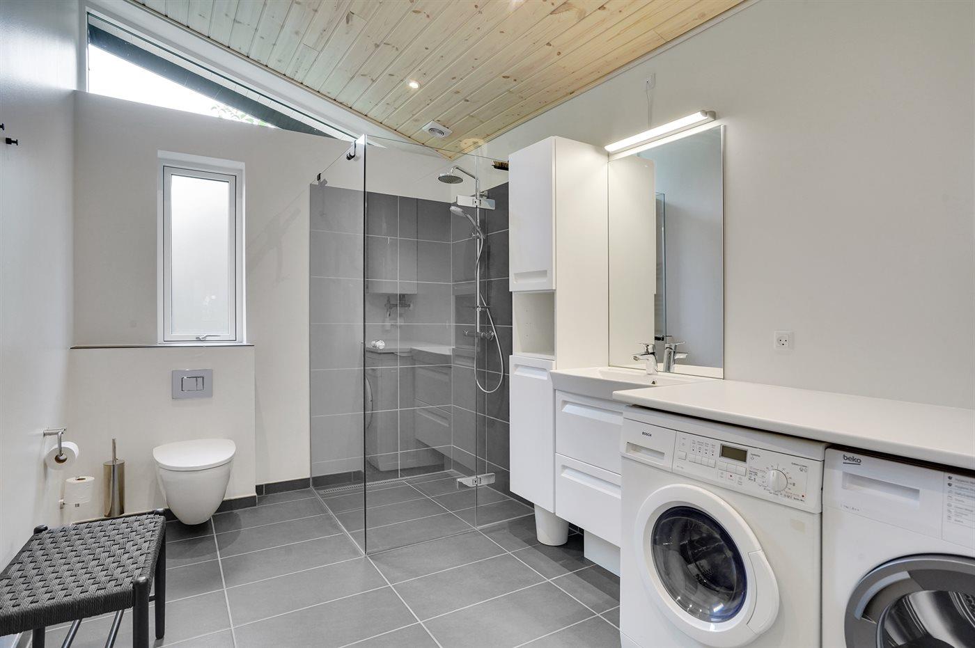 Der er 2 badeværelser med bruseniche og 2 toiletter. Der er gulvvarme på 2 badeværelser.