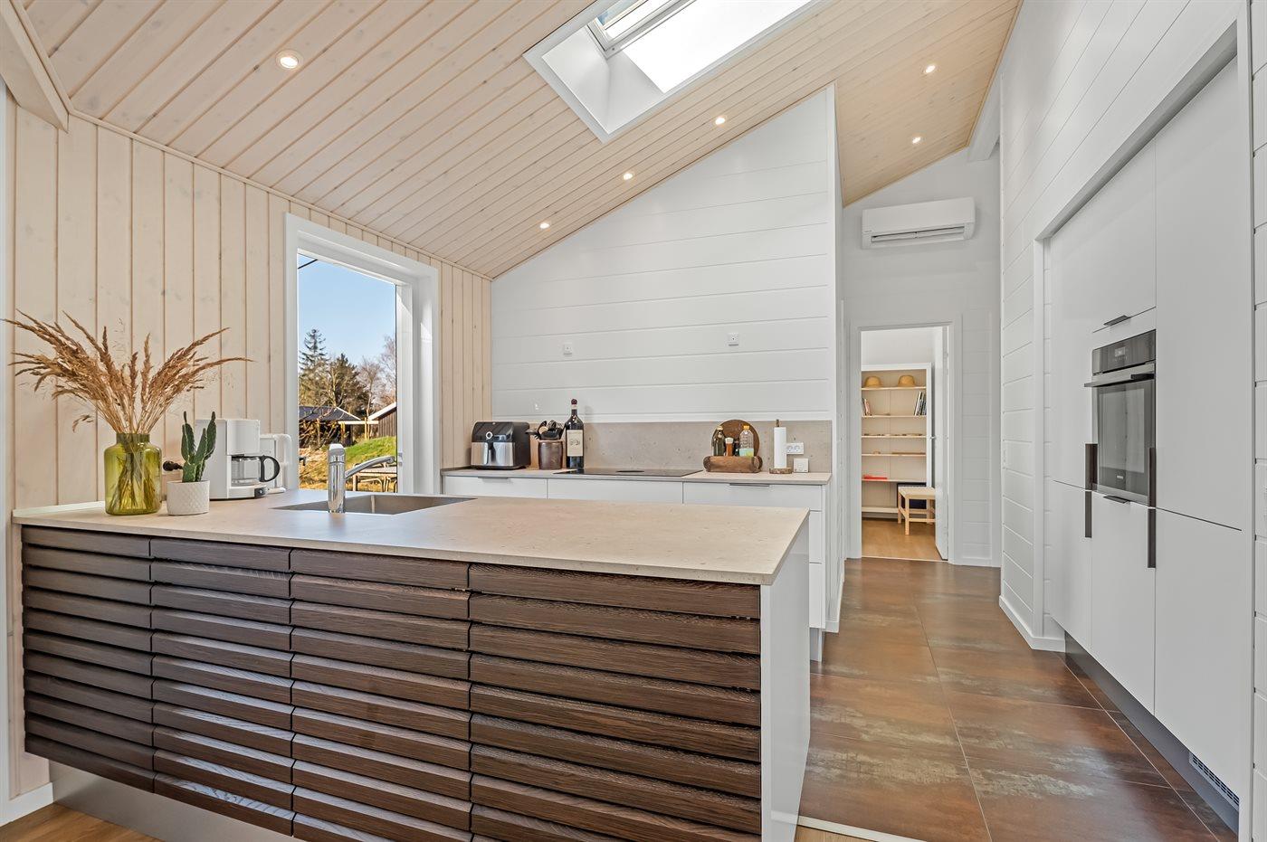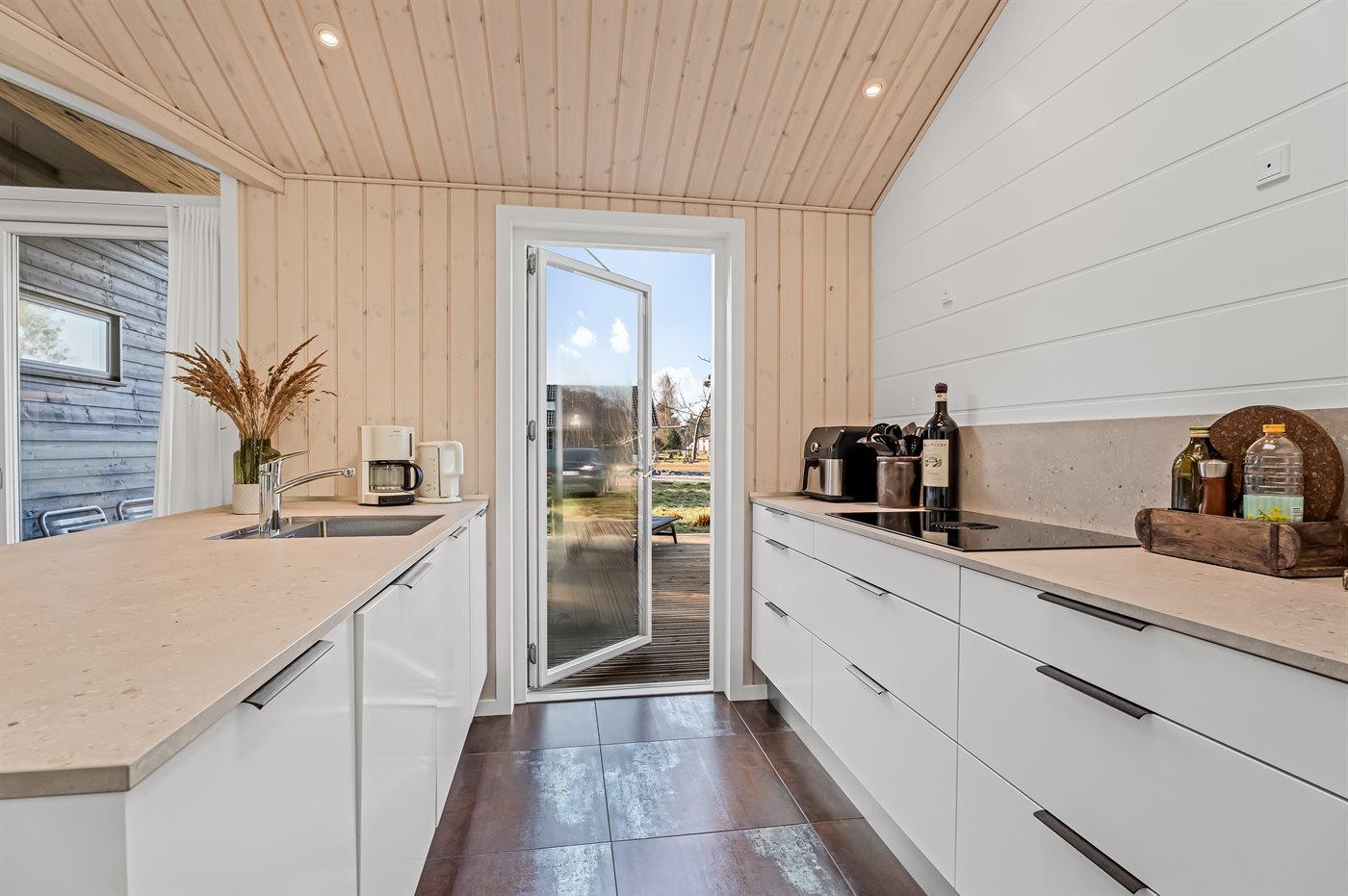 Køkkenet er udstyret med 1 køleskab. Der er 4 induktionskogeplader, varmluftovn, Airfryer samt opvaskemaskine.