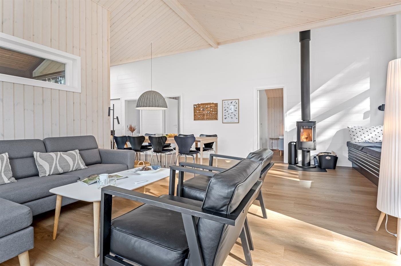 Huset har plads til op til 8 personer og byder på både brændeovn og energivenlig luft til luft varmepumpe. Der er to badeværelser med brusenicher samt en udendørs bruser.