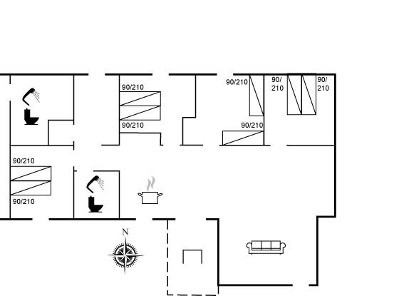 Der er i alt 4 soveværelser. Sovepladserne fordeler sig på: 6 sovepladser i dobbeltsenge. 2 sovepladser i enkeltsenge.