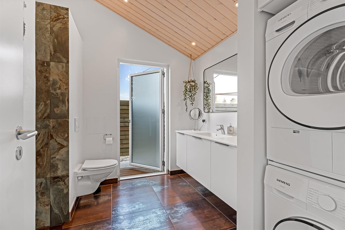 Der er 2 badeværelser med bruseniche og 2 toiletter. Der er gulvvarme på 2 badeværelser.
