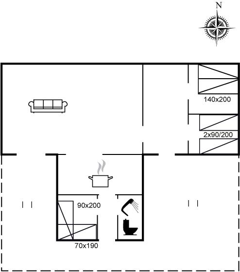 Der er i alt 3 soveværelser. Sovepladserne fordeler sig på: 2 sovepladser i dobbeltseng. 3 sovepladser i enkeltsenge.1 soveplads i køjeseng.
