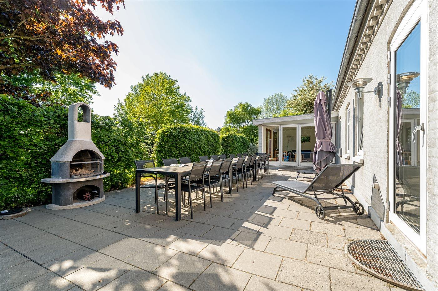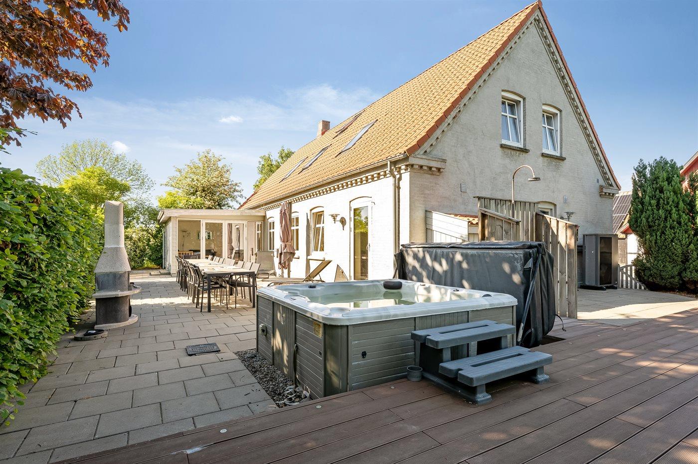 I landlige omgivelser ligger denne store feriebolig velegnet for flere familier, som ønsker at holde ferie sammen. Her er gode aktivitetsmuligheder ude som inde, og med soverum der hovedsageligt ligger på 1. sal inklusive hems, hvor 6 sovepladser befinder sig. Aktivitetsrum findes i åben forbindelse med opholdsstuen. Den udendørs swimmingpool står til rådighed fra 1. juni til 31. august.