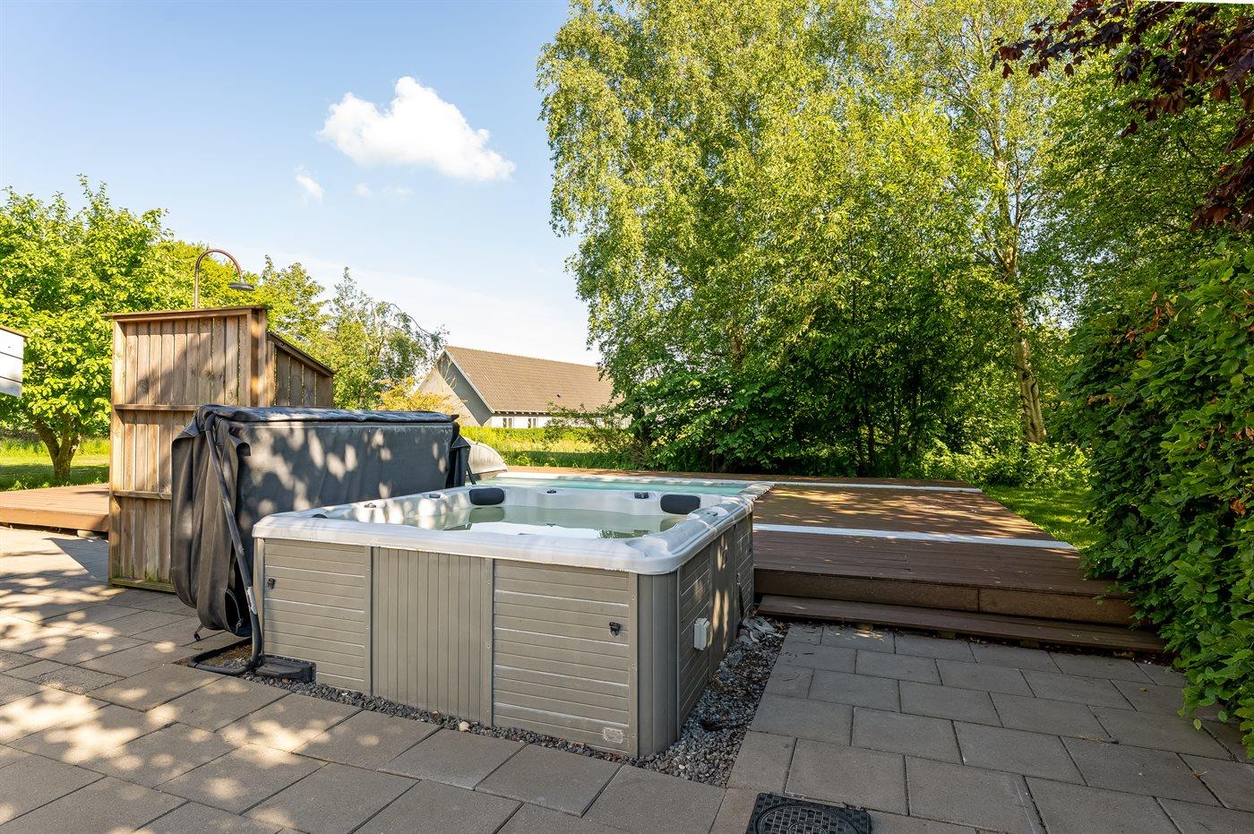Der er mulighed for afslapning i udendørs standvandsspa til 6 personer.