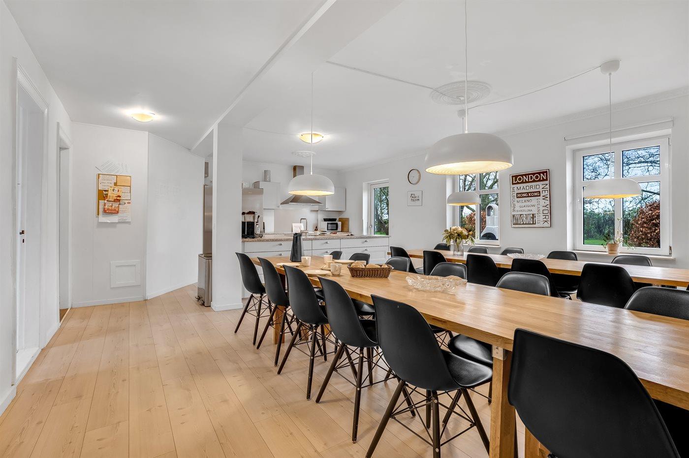 Køkkenet er udstyret med 3 køleskabe. Der er 8 induktionskogeplader, 2 varmluftovne, mikrobølgeovn samt 2 opvaskemaskiner.