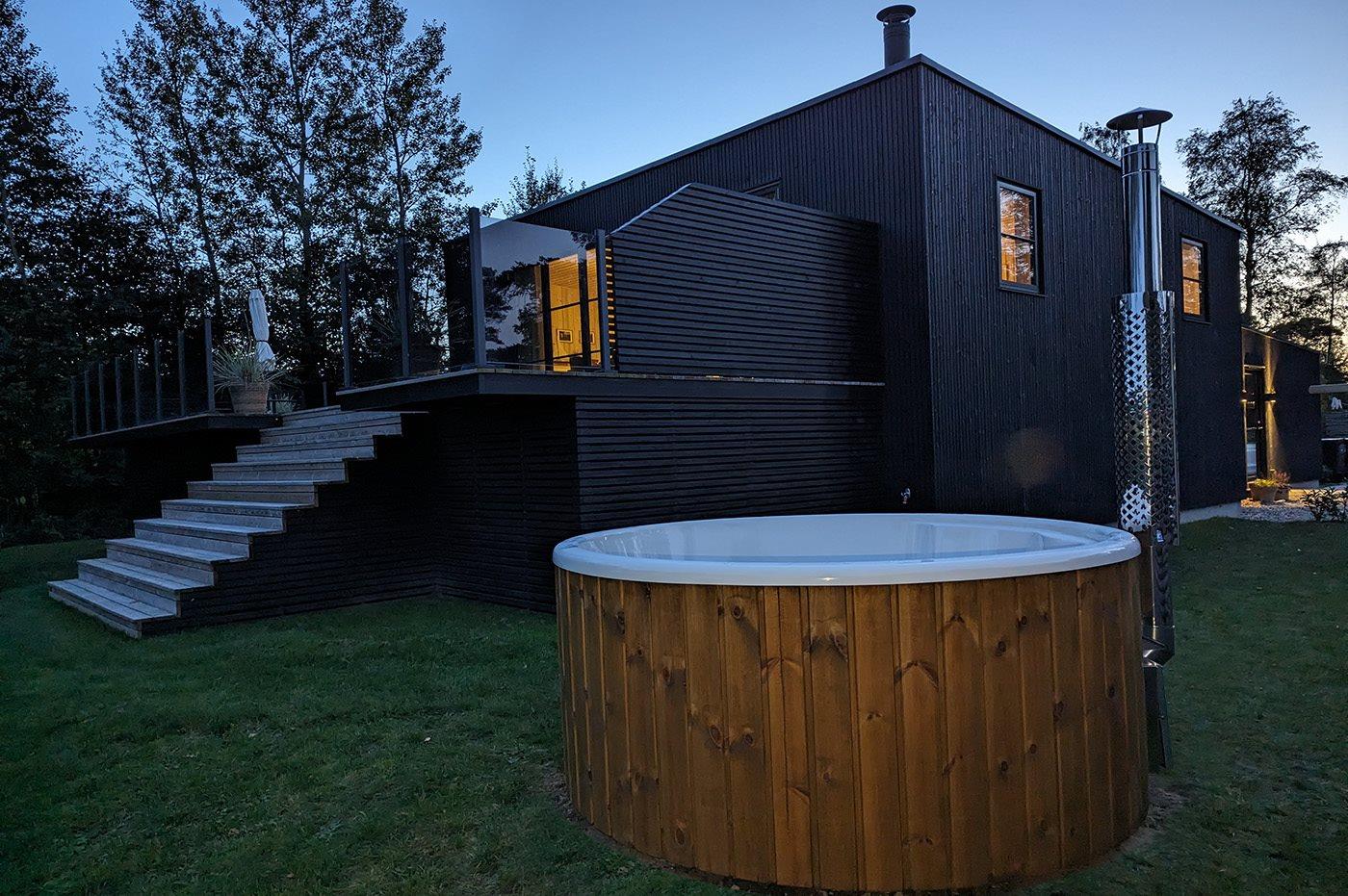 Der er mulighed for afslapning i det udendørs vildmarkskar til 4 personer.