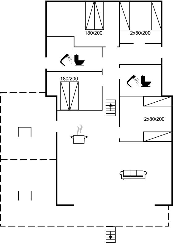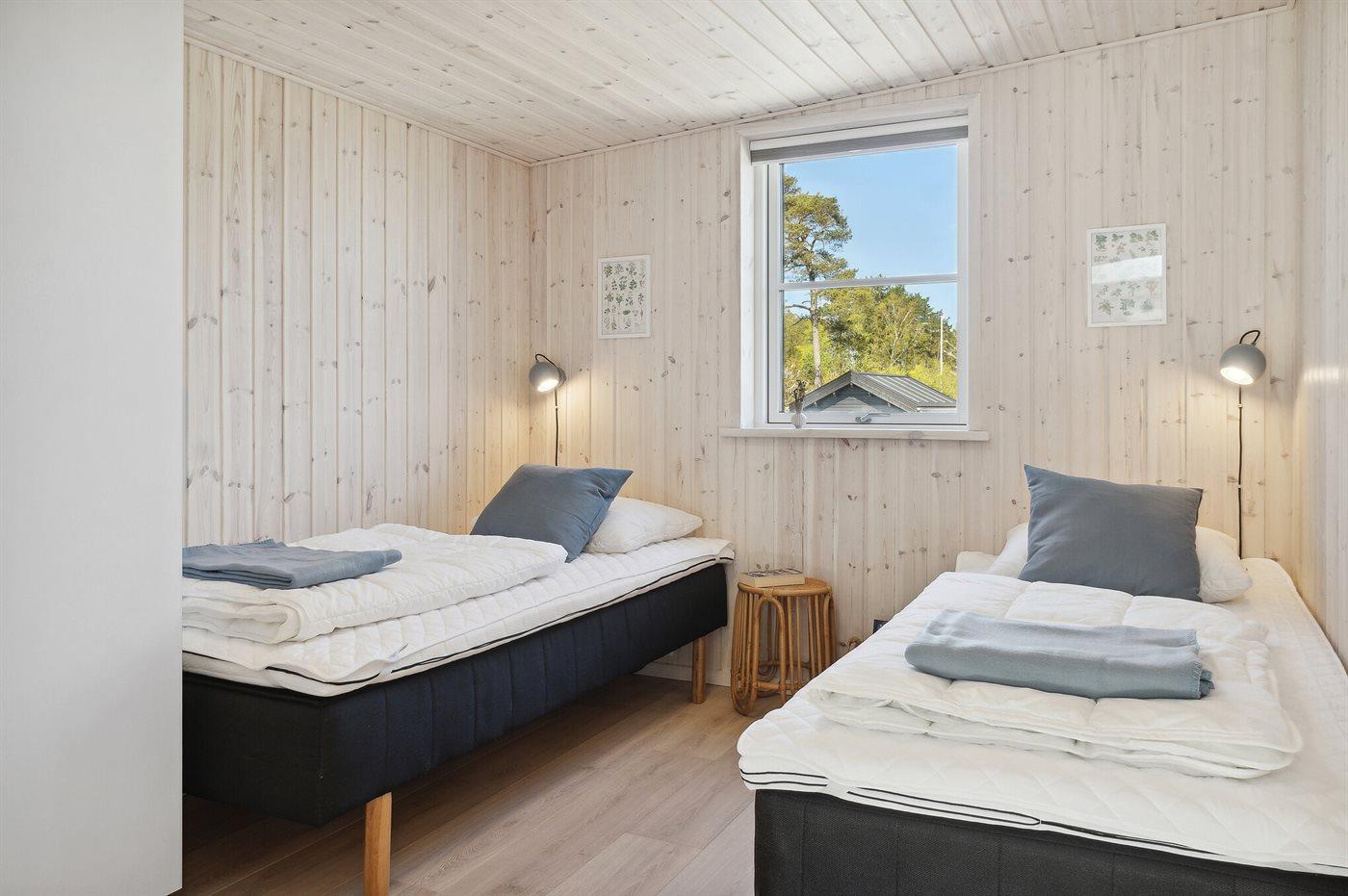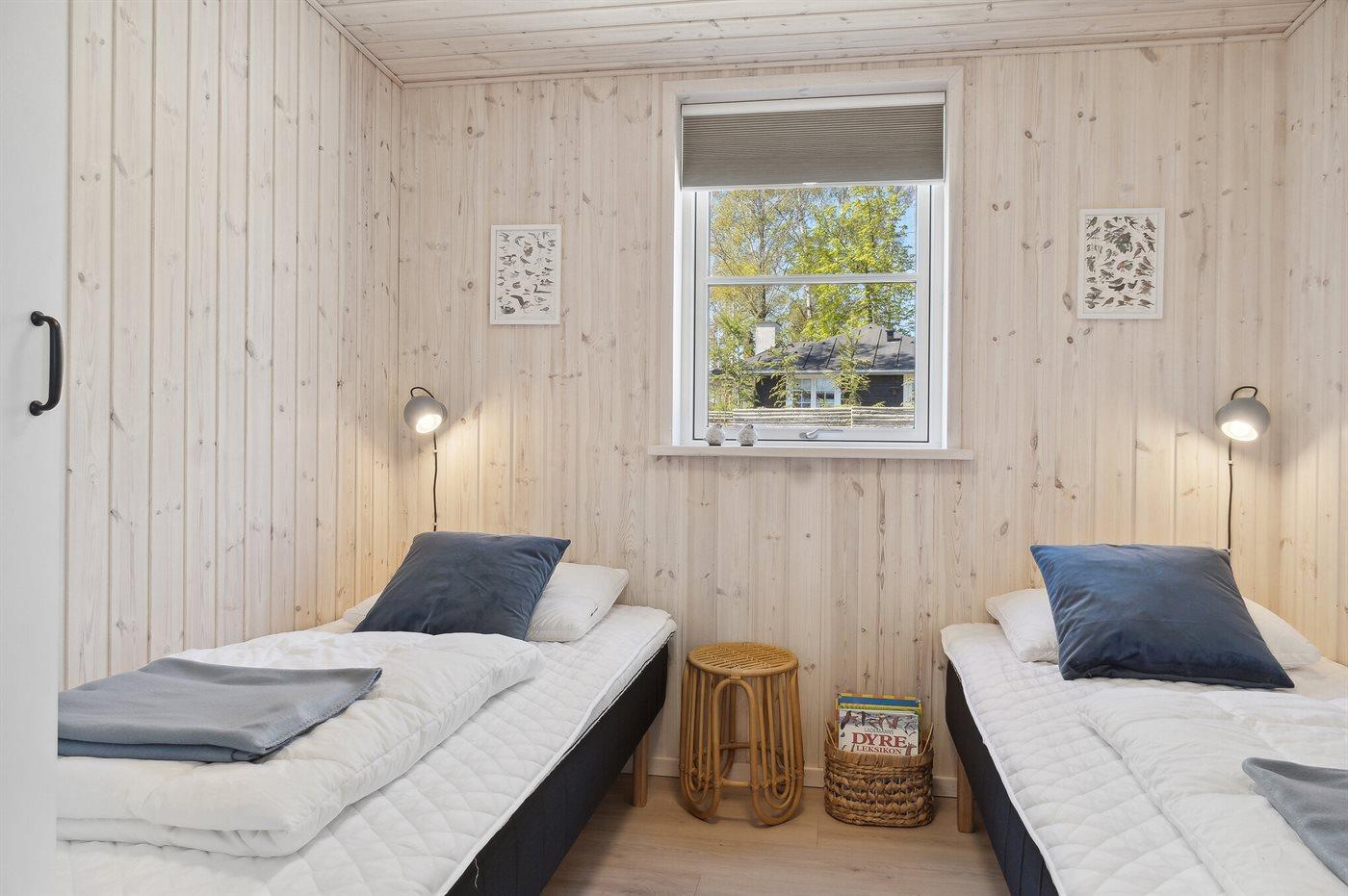 Der er i alt 4 soveværelser. Sovepladserne fordeler sig på: 4 sovepladser i dobbeltsenge. 4 sovepladser i enkeltsenge. Derudover er der 1 stk. barneseng.
