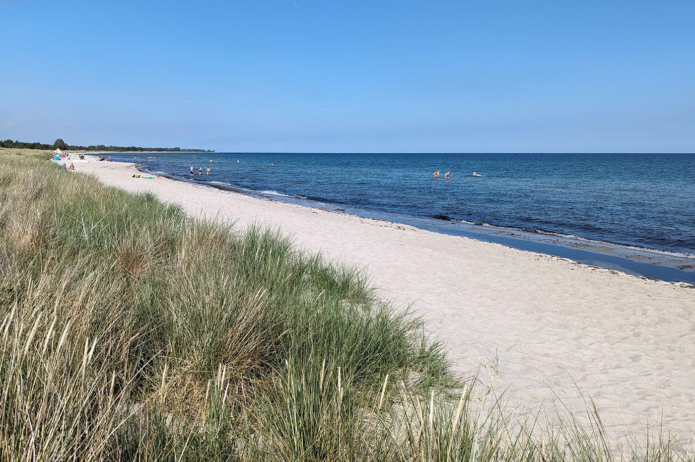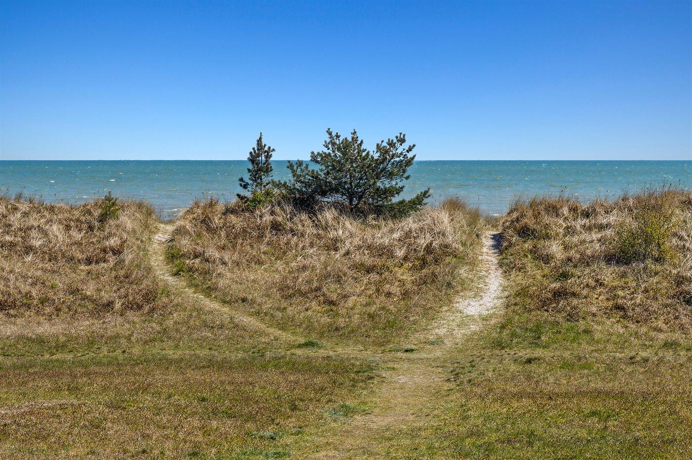 Fra baghaven kan man gå lige ud på diget og dermed tage den både kønne og hurtige vej til centrum af Marielyst.