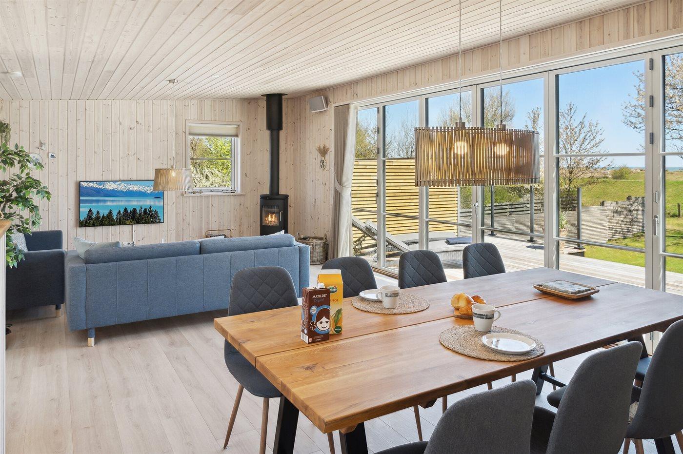 Sommerhuset egner sig til 8 personer. Ferieboligen er på 123 m², er i 1 ½ plan, og er bygget i 2022. Det er ikke tilladt at medbringe husdyr. Ferieboligen er udstyret med 1 energivenlig luft til vand varmepumpe. Hele ferieboligen har gulvvarme. Ferieboligen har vaskemaskine. Tørretumbler. Frysekapacitet på 61 liter. Der er desuden brændeovn. Til de små er der 1 stk. barnestol.