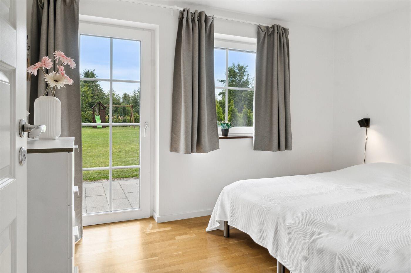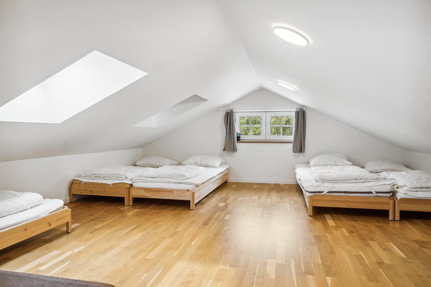 Der er i alt 5 soveværelser. Sovepladserne fordeler sig på: 4 sovepladser i dobbeltsenge. 11 sovepladser i enkeltsenge. 1 soveplads på madras.- 5 af disse sovepladser befinder sig på husets hems på stabelsenge, og 1 soveplads befinder sig på hems i et af soveværelserne. Derudover er der 2 stk. barnesenge.