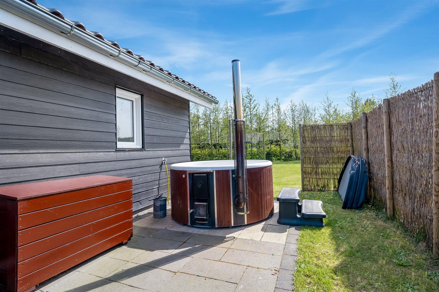 Ferieboligen er beliggende på en 2099 m² stor naturgrund. Der er 900 m til havet. Nærmeste forretning er beliggende i en afstand af 2000 m. Til ferieboligen hører åbent terrasseareal. Gynge. Sandkasse. Fodboldmål. Bålsted. Der er overdækket, opmuret grill til rådighed. Parkering ved ferieboligen.