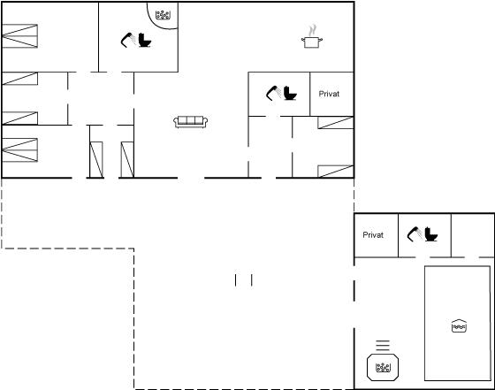 Der er 3 badeværelser med bruseniche og 3 toiletter I saunaen er der mulighed for afslapning.