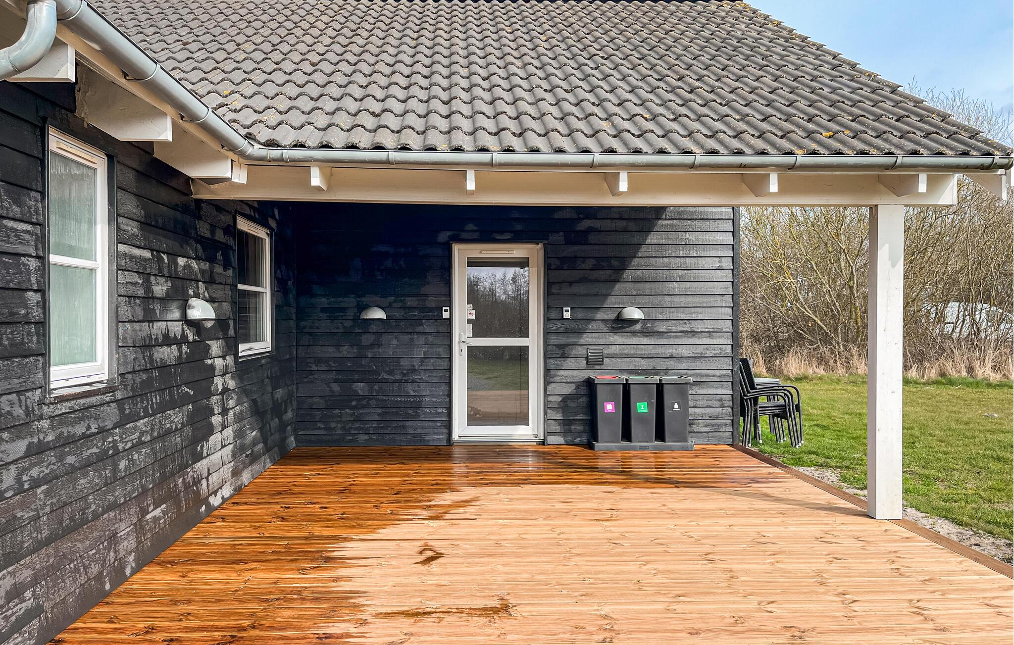 Slap af på den store træterrasse, hvor liggestole og vildmarksbadet indbyder til afslapning. Lad børnene lege i sandkassen eller på legetårnet med rutsjebane, mens I forbereder aftensmaden ved grillen. Takket være den afskærmede beliggenhed kan I nyde uforstyrrede timer udenfor.