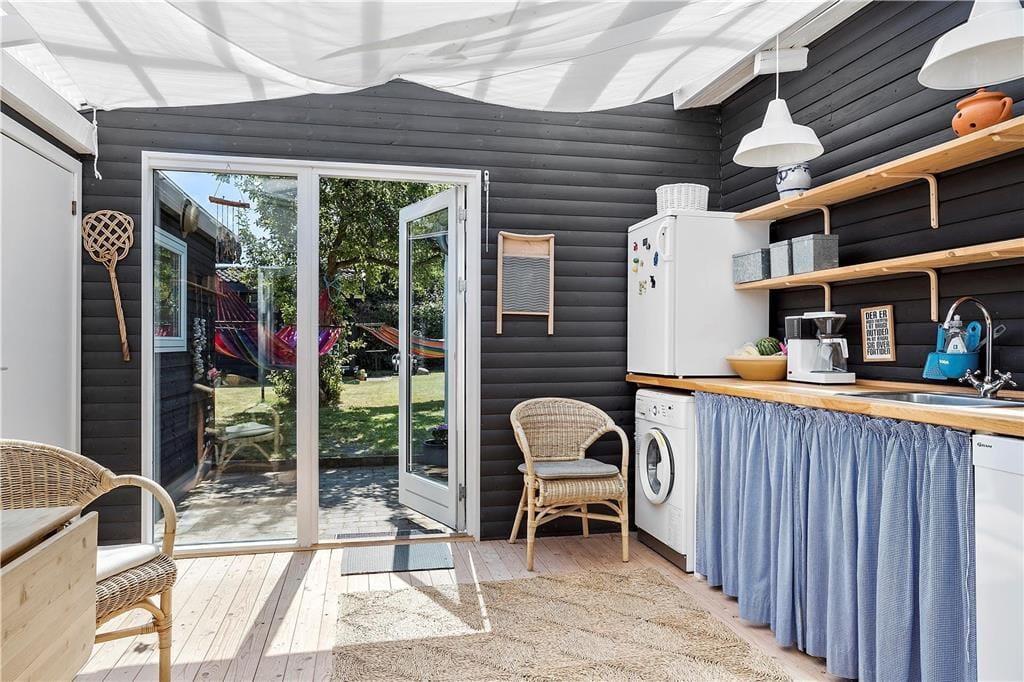 Når du træder ind, mødes du af lys og åbenhed, hvor vinduerne rækker ud mod naturen og henter dagen ind. Her er plads til samtaler, grin og stille stunder, og samtidig mulighed for at finde dig et hjørne til dig selv, hvis du trænger. Indretningen er varm og imødekommende, med materialer der føles rigtige og detaljer som gør, at du straks føler dig hjemme. Du har mulighed for at slå et par timer over i arbejde, hvis behovet er der, og bagefter lade blikket glide mod horisonten og mærke hvordan hverdagen træder i baggrunden. Når aftenen falder på, tænder du for lyset, læner dig tilbage og lader dagens tempo finde sit naturlige leje.