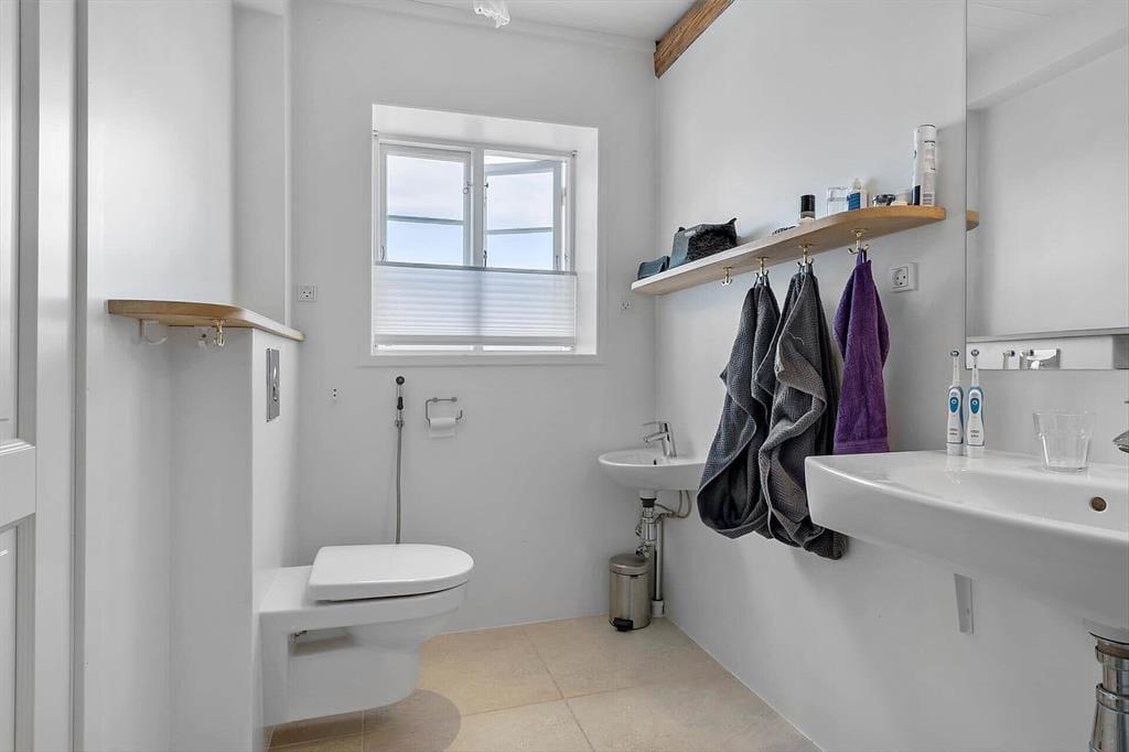 Det store fælles bryggers, som deles med lejlighed på 1. sal, har rigelig garderobeplads, vaskemaskine og tørretumbler.
