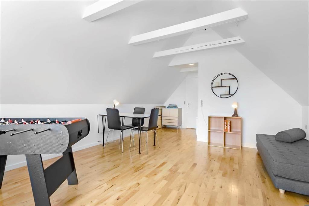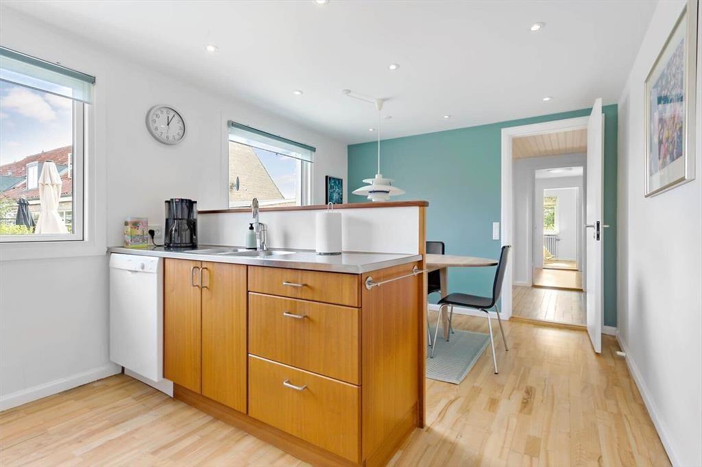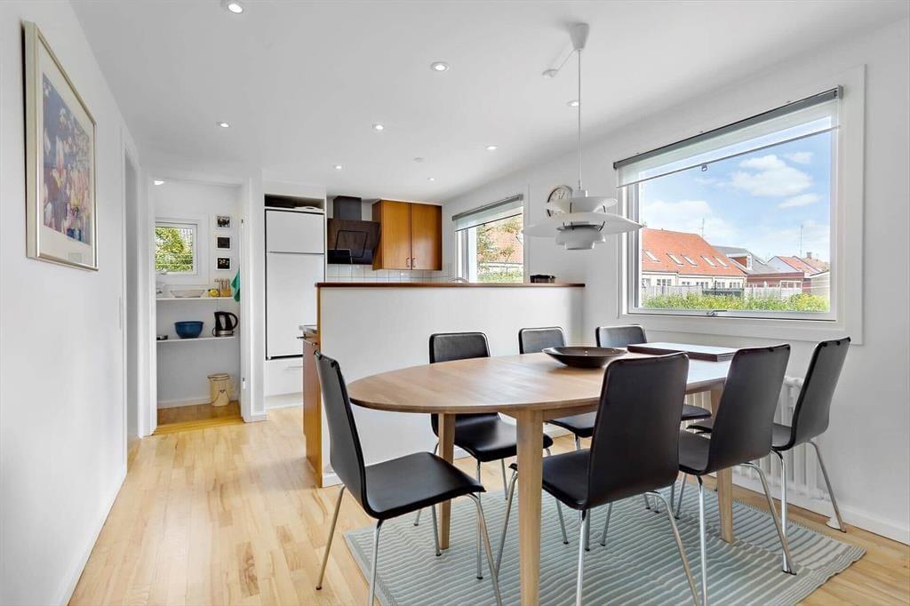 Når du træder ind i huset, møder du et stilfuldt indrettet hjem med lyse farver på væggene, der skaber en behagelig atmosfære. Det åbne køkken er hjertet i huset og byder på en god spiseplads, hvor du kan nyde måltiderne med familien eller vennerne. De tre soveværelser er rummelige og udstyret med god skabsplads, så du nemt kan pakke ud og føle dig hjemme. Indretningen kombinerer moderne elementer med husets oprindelige karakter, hvilket giver en unik og hyggelig stemning. Uanset om du ønsker at lave mad, hygge dig med en bog eller nyde en filmaften, vil du finde komfort og ro i dette charmerende byhus.