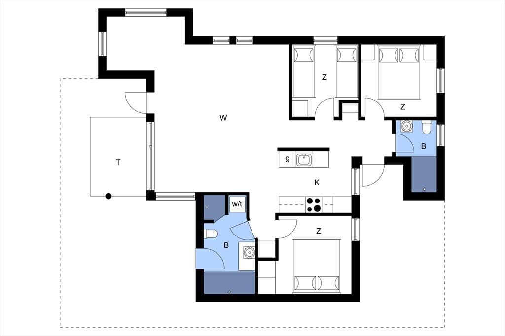 Huset rummer to gode soveværelser med dobbeltsenge samt et børneværelse med køjeseng, så der er god plads til hele familien. Badeværelset er lyst og velindrettet med et badekar, hvor du kan slappe af efter en dag med frisk luft og oplevelser.