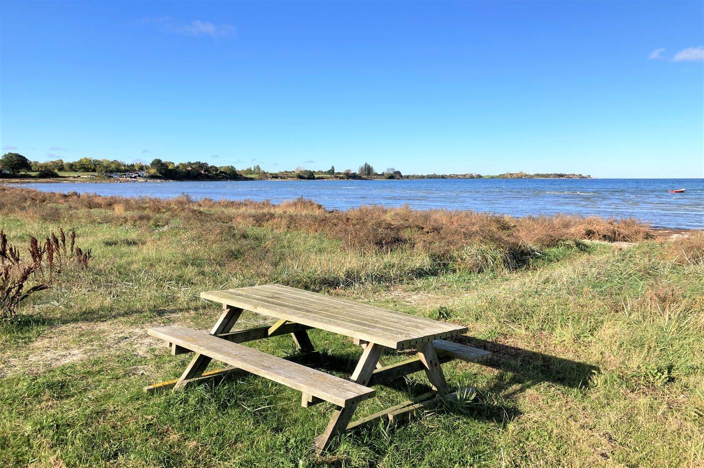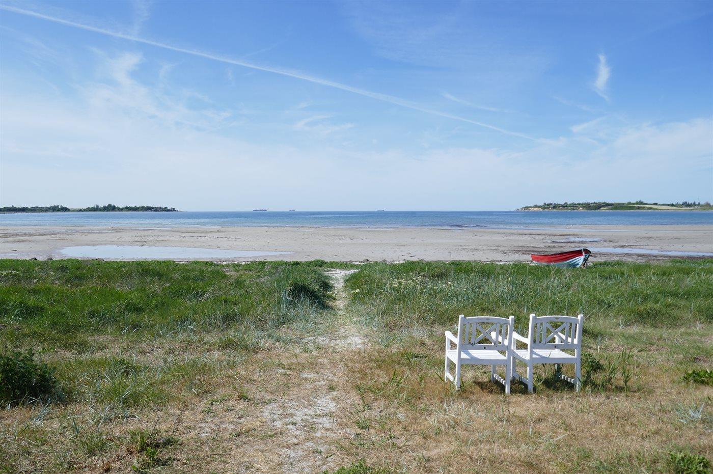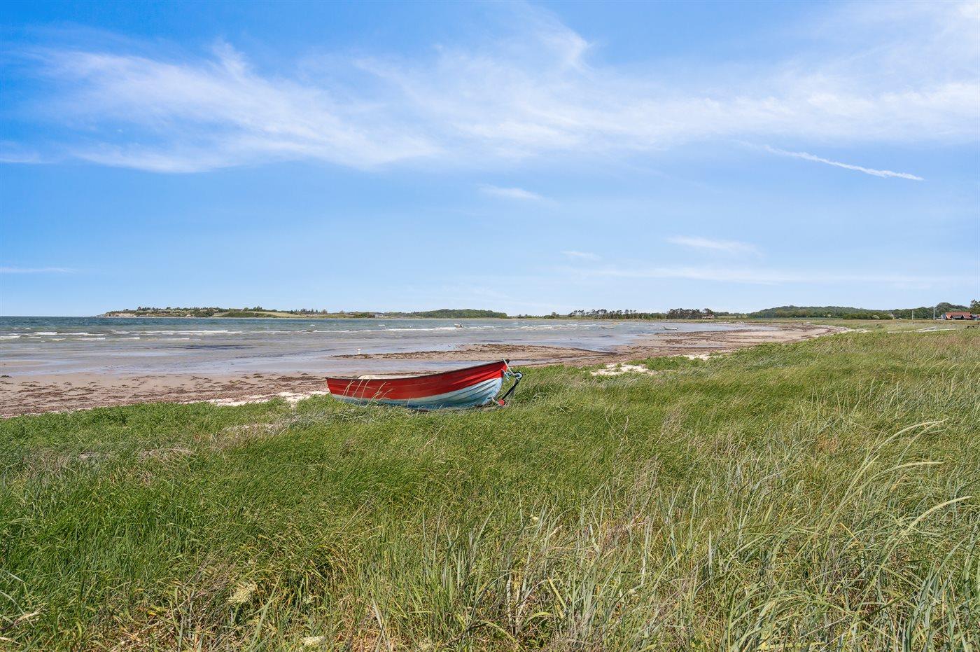 Lige overfor huset er der sti ned til den skønne sandstrand. I området er der masser af natur og gode fiskemuligheder, og der er kun ca. 10 min. kørsel til det hyggelige Kerteminde.