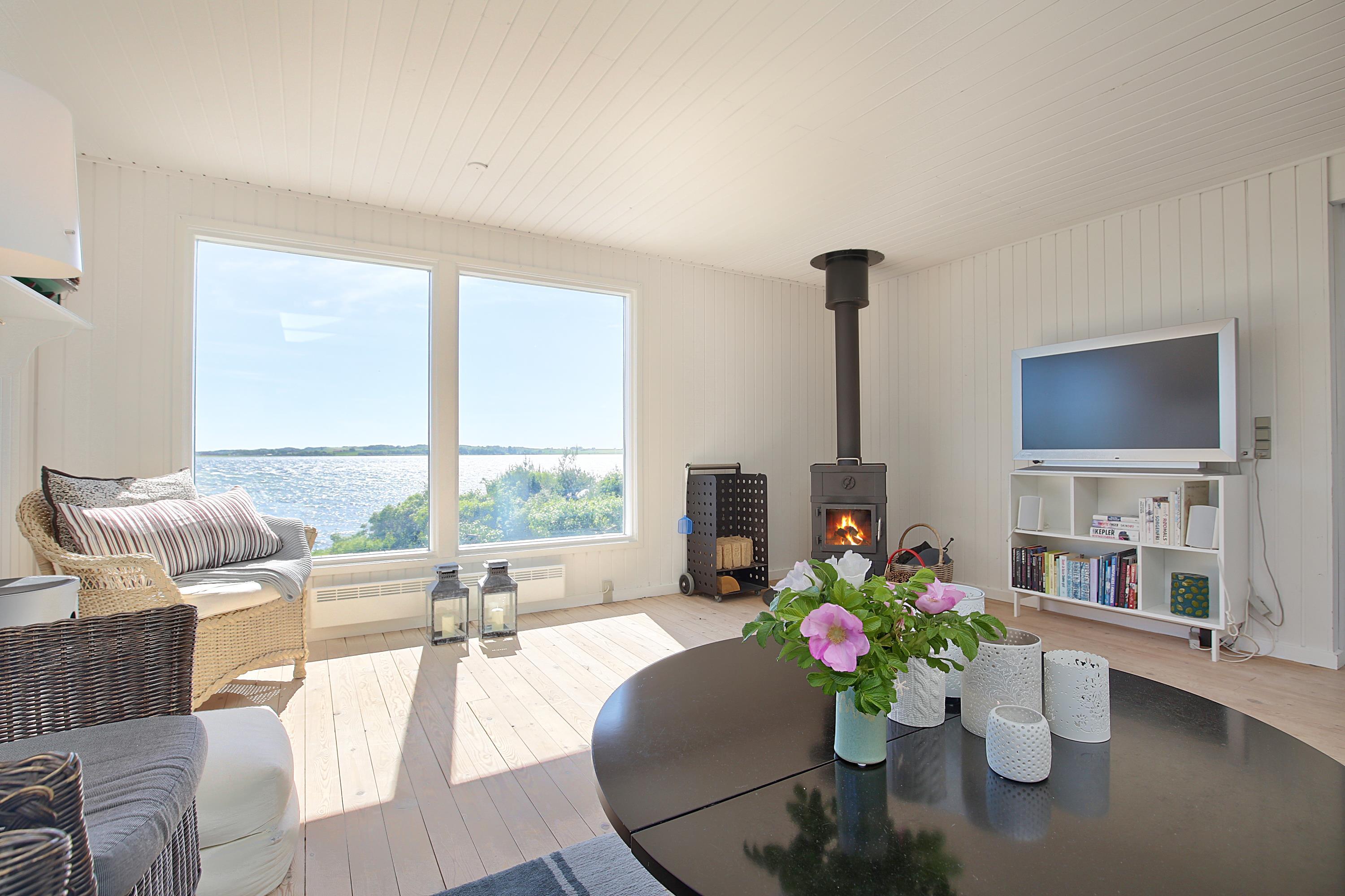 Charmerende sommerhus ved stranden med fantastisk udsigt over Knebel Vig og Knebel Bro.