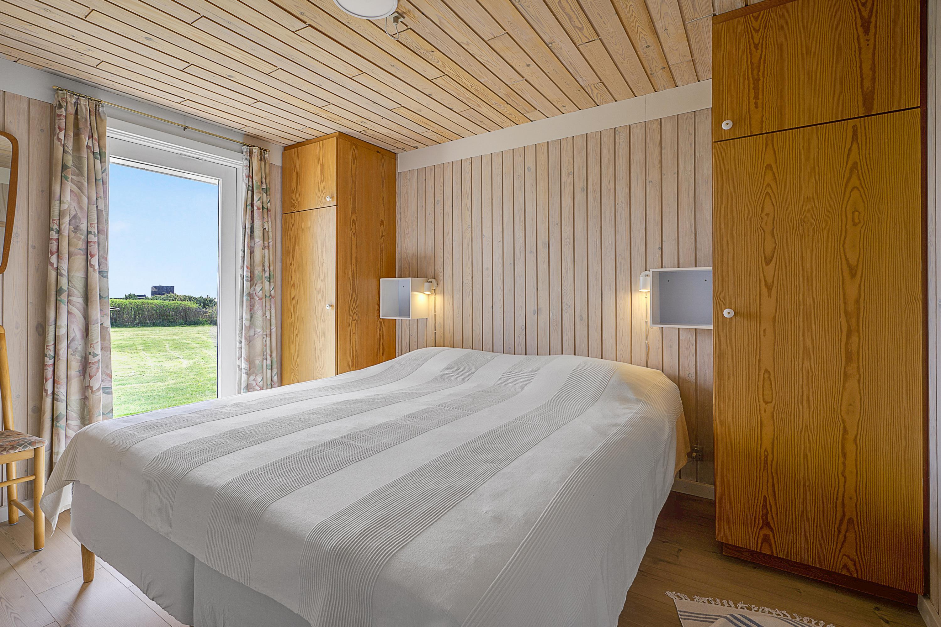 Stor, lys stue med lofter til kip og stort vinduesparti med havudsigt samt udgang til terrasse. Bekvemt og rummeligt sofamøblement med lænestole, brændeovn, TV med danske (inkl. TV2) og tyske kanaler, CD-afspiller samt radio. I halvåben forbindelse med opholdsstuen er der en hyggelig spisestue til 6 personer. Nyt, dejligt og velindrettet køkken med god arbejdsplads og udgang til terrasse samt komfur med keramiske kogeplader og ovn, køle-/fryseskab og opvaskemaskine. De 6 sovepladser fordeler sig på 1 stort soveværelse med dobbeltseng samt 1 værelse med 2 enkeltsenge og 1 køjeseng. Lækkert, nyt badeværelse med skabsarrangement, bruseniche og vaskemaskine. Huset har varmepumpe med aircondition. Internetadgang.