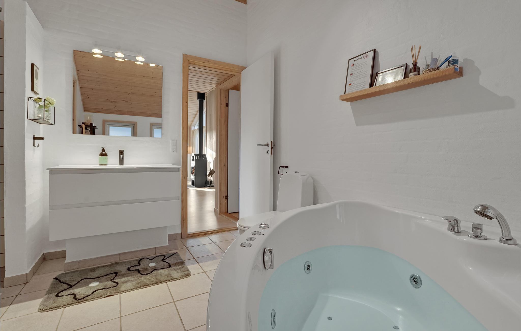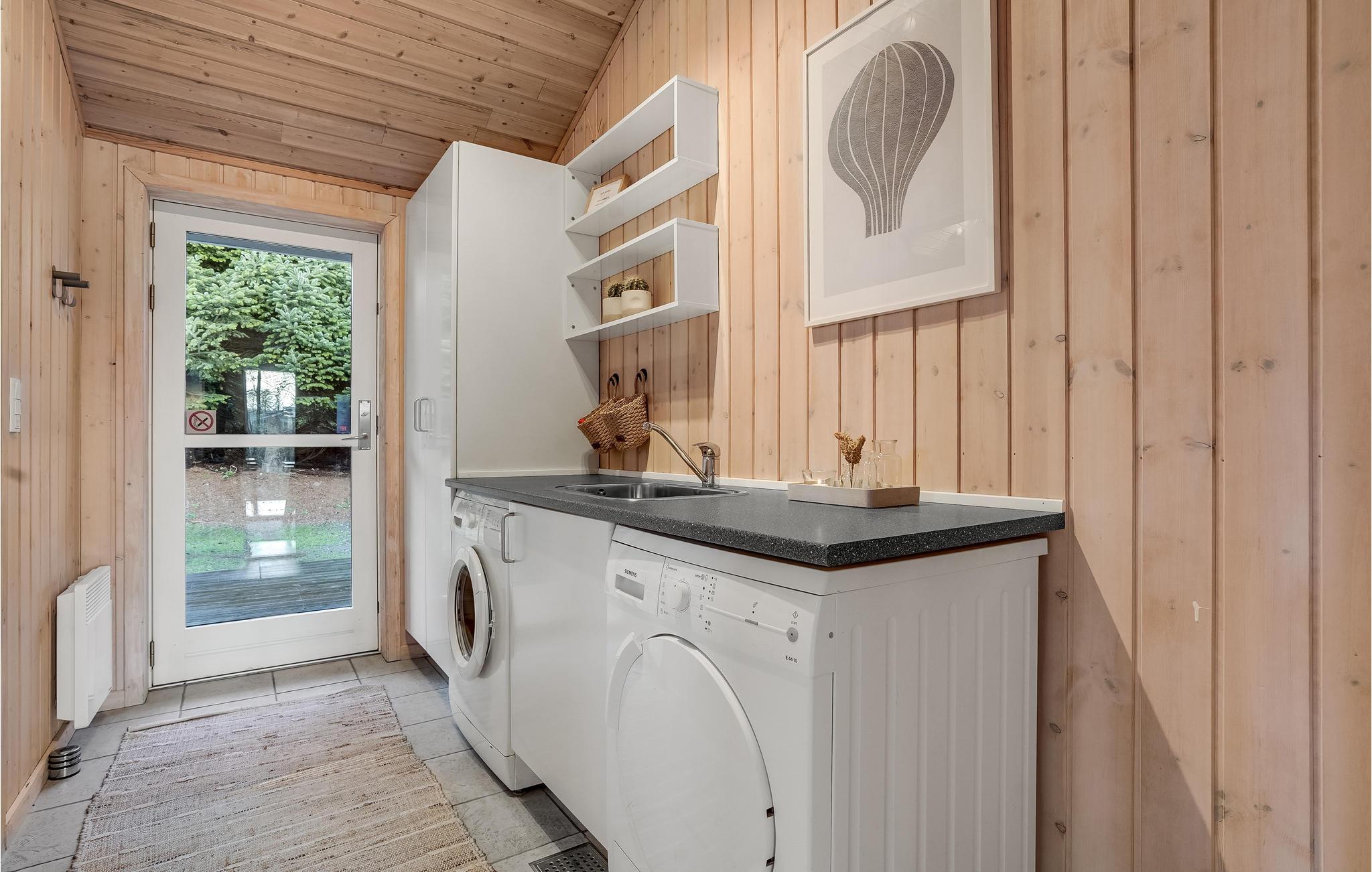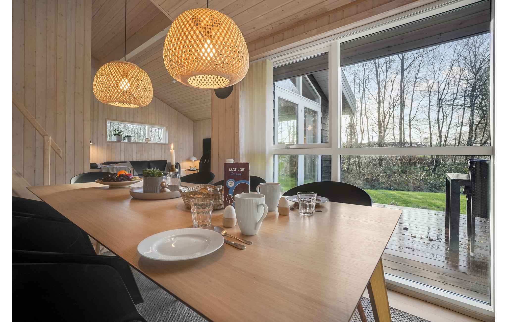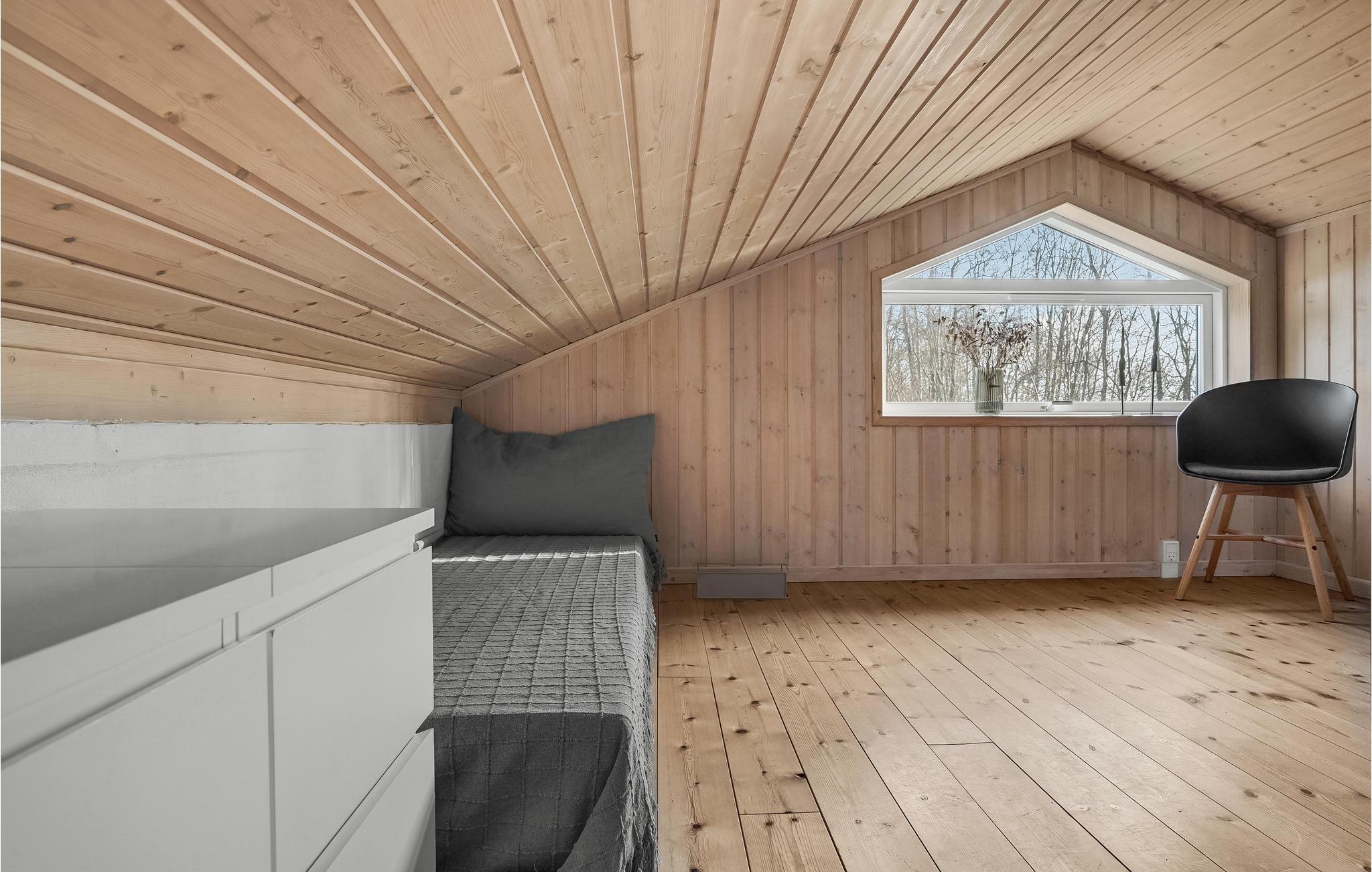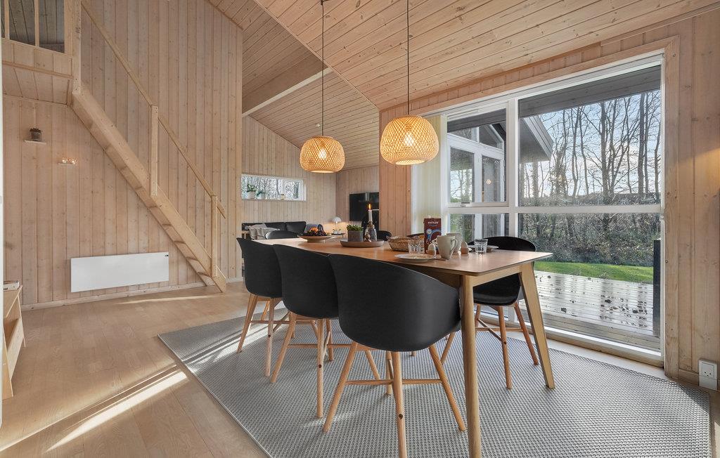 Tæt ved vandet, ligger dette feriehus, hvor det er dejligt at opholde sig både uden- og indendørs. Huset ligger på en kuperet grund. Det er praktisk indrettet og der er udover soverummene en stor hems, som kan benyttes af både børn og voksne. I det store badeværelse er der både whirlpool og sauna. I køkkenet finder I alt i moderne udstyr og stuen er indrettet med gode møbler. Fra huset er der mange muligheder for oplevelser og udflugter i naturen, i bymiljøer og f.eks. i oplevelsesparken Universe.