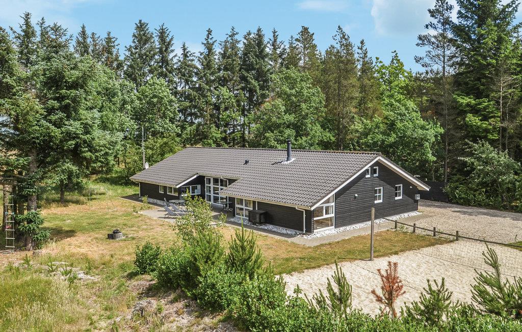Moderne swimmingpoolhus i Mosevrå med sauna, spabad og stor naturgrund nær Blåvand Strand.