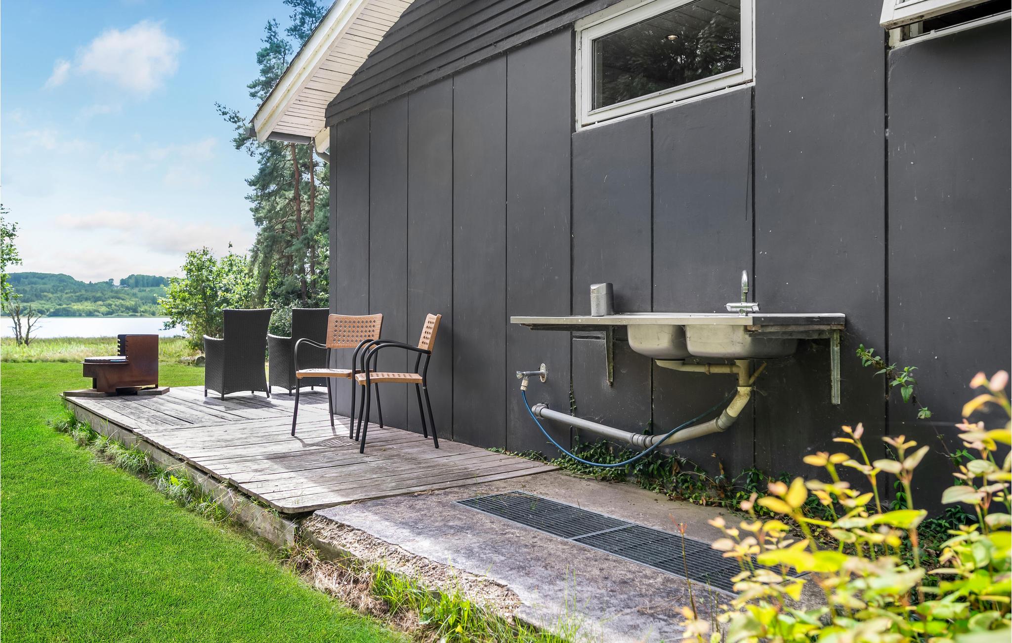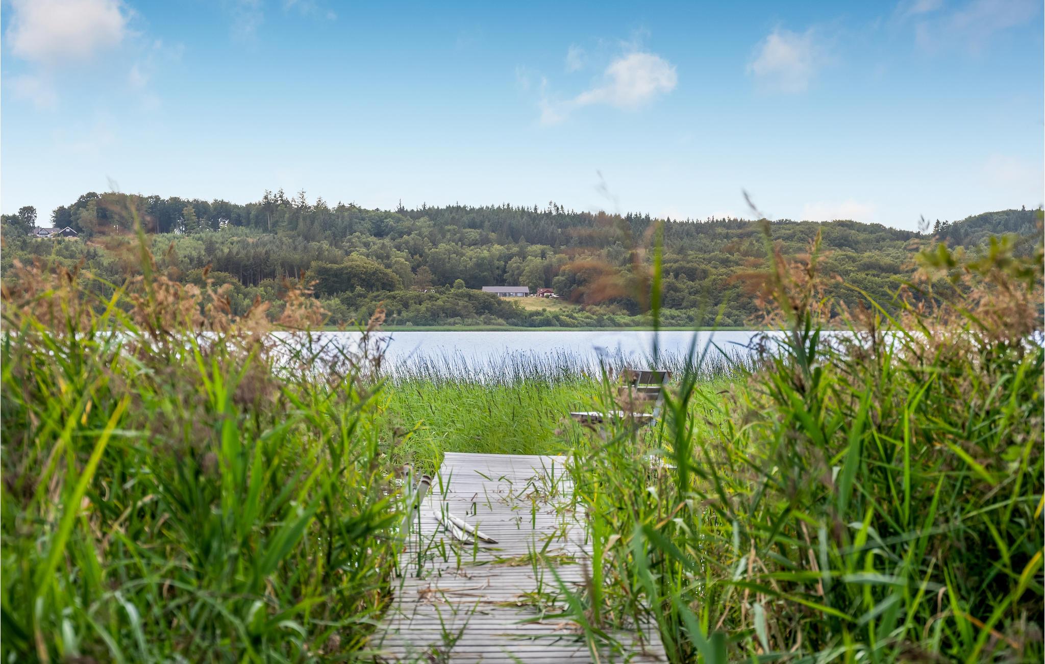 Feriehus med sø, badebro og bålplads ved Mossø