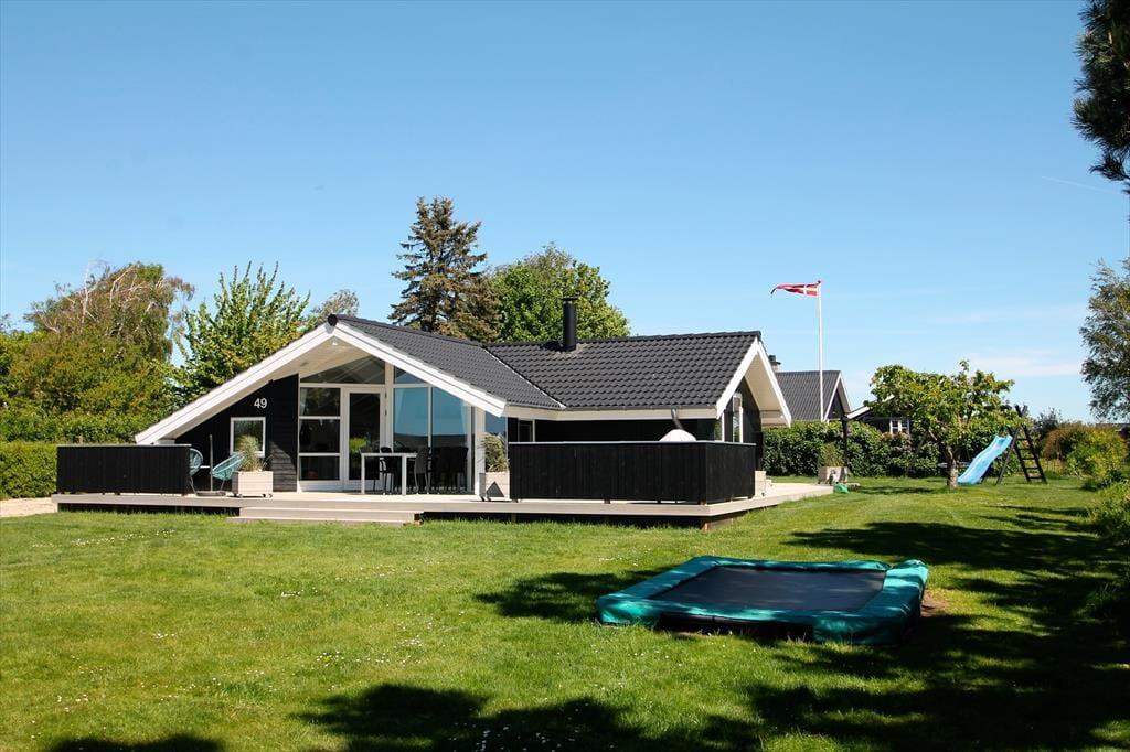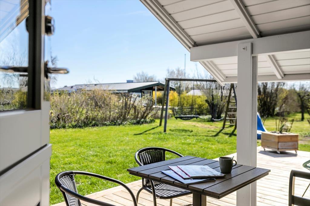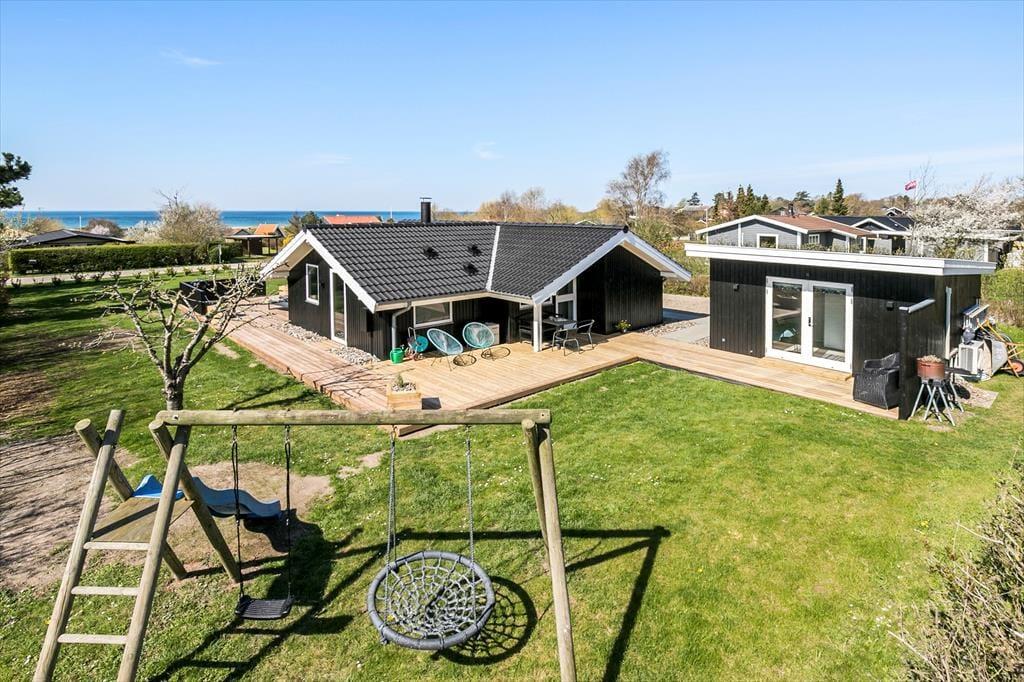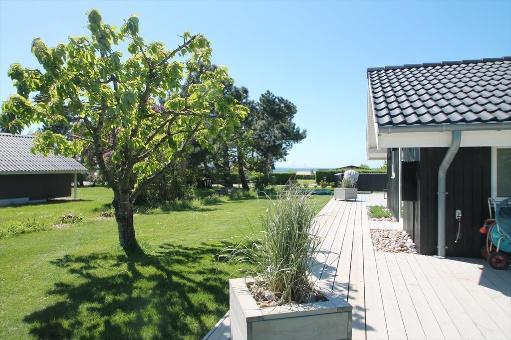 Feriehuset har en dejlig ugeneret grund på 1002 m3 med en skøn ny træterrasse, som går rundt om det meste af huset. Herfra kan man nyde udsigten til Storebæltsbroen, nyde solen i fulde drag og få gang i grillen til aften. Ved feriehuset er der havemøbler, liggestole, grill og gyngestativ med rutsjebane.