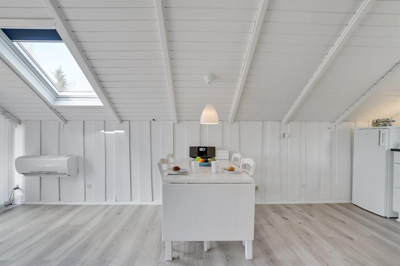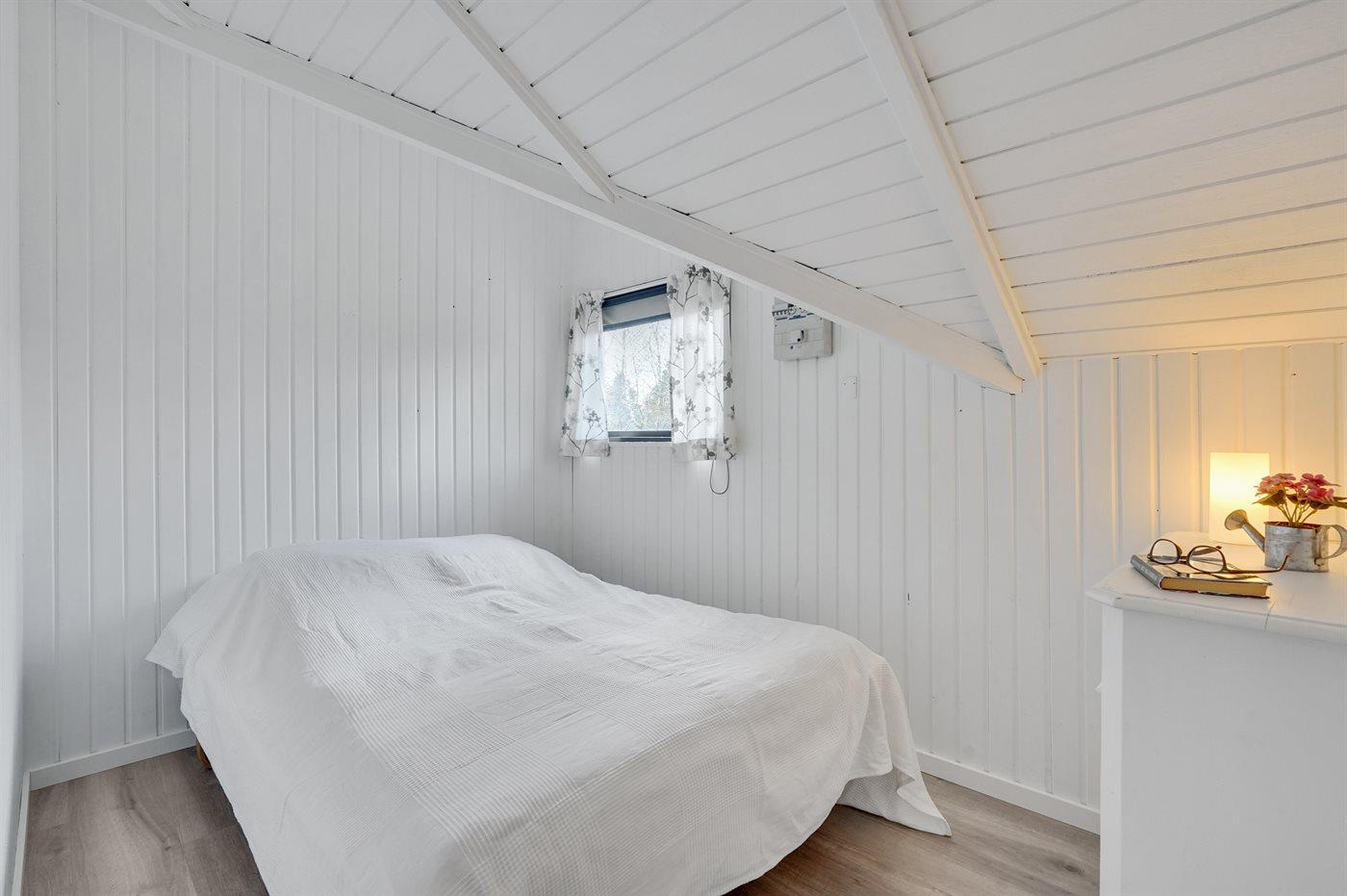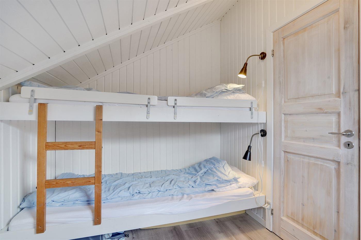 Der er i alt 2 soveværelser. Sovepladserne fordeler sig på: 2 sovepladser i dobbeltseng. 2 sovepladser i køjeseng. Derudover er der 1 stk. barneseng.