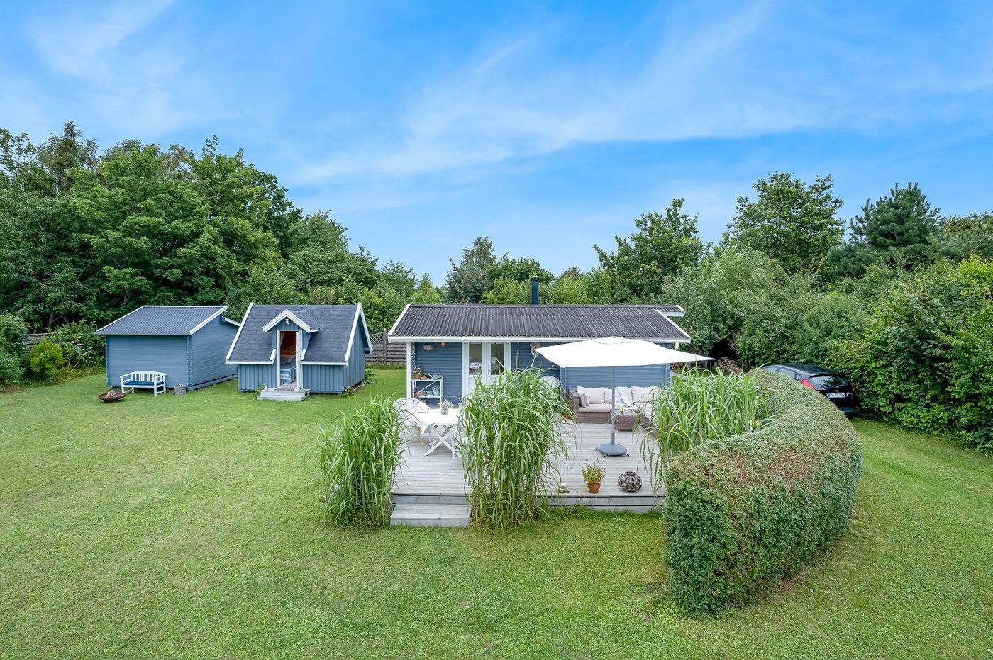 Glæd jer til en skøn beliggenhed i et grønt sommerhusområde med kort afstand til stranden.