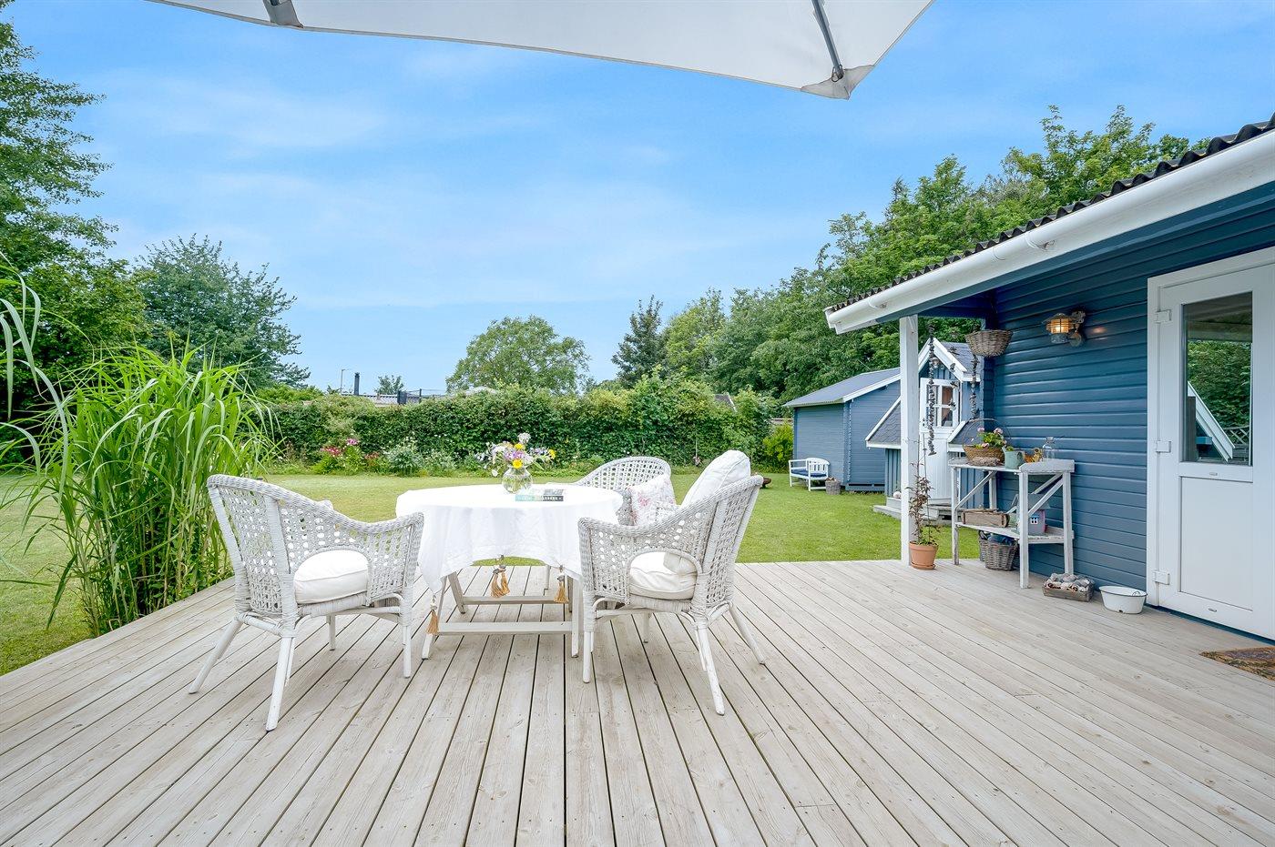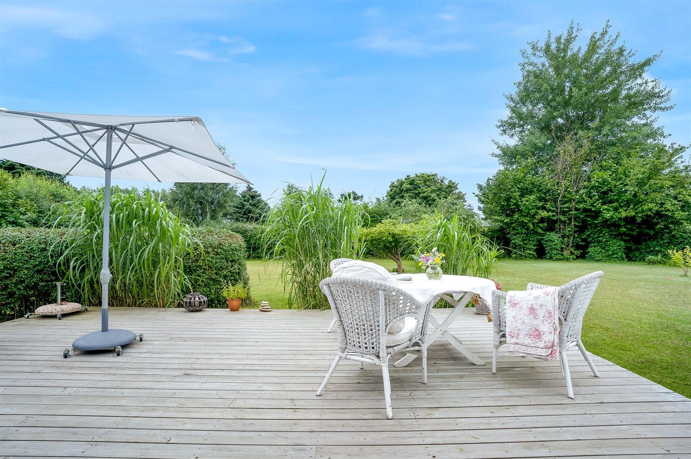 Terrassen bliver jeres foretrukne opholdssted i de varme måneder, for her kan I hygge jer med en frokost i det grønne eller en kop kaffe, mens børnene har det sjovt på græsplænen.
