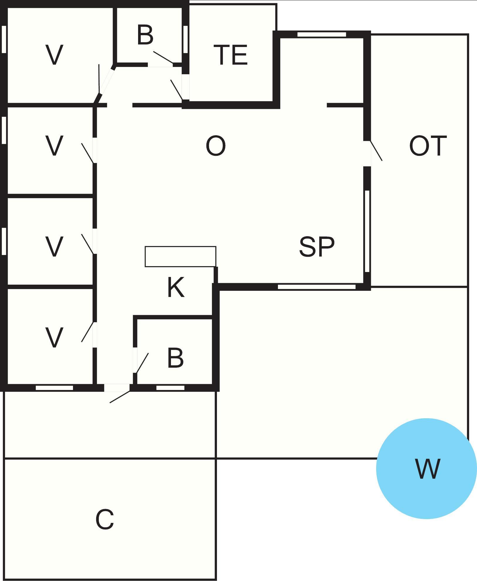 Stuen og køkkenet i åbent plan skaber et lyst og indbydende rum til fælles måltider og afslapning. En brændeovn tilføjer varme og en hyggelig atmosfære under køligere aftener. Fra stuen kan du træde ud på en stor overdækket terrasse, der giver et vindbeskyttet sted at nyde udendørslivet. Derudover vender en større åben terrasse mod sydvest, med et badekar og en udendørs bruser til en forfriskende oplevelse efter en dag ved vandet.