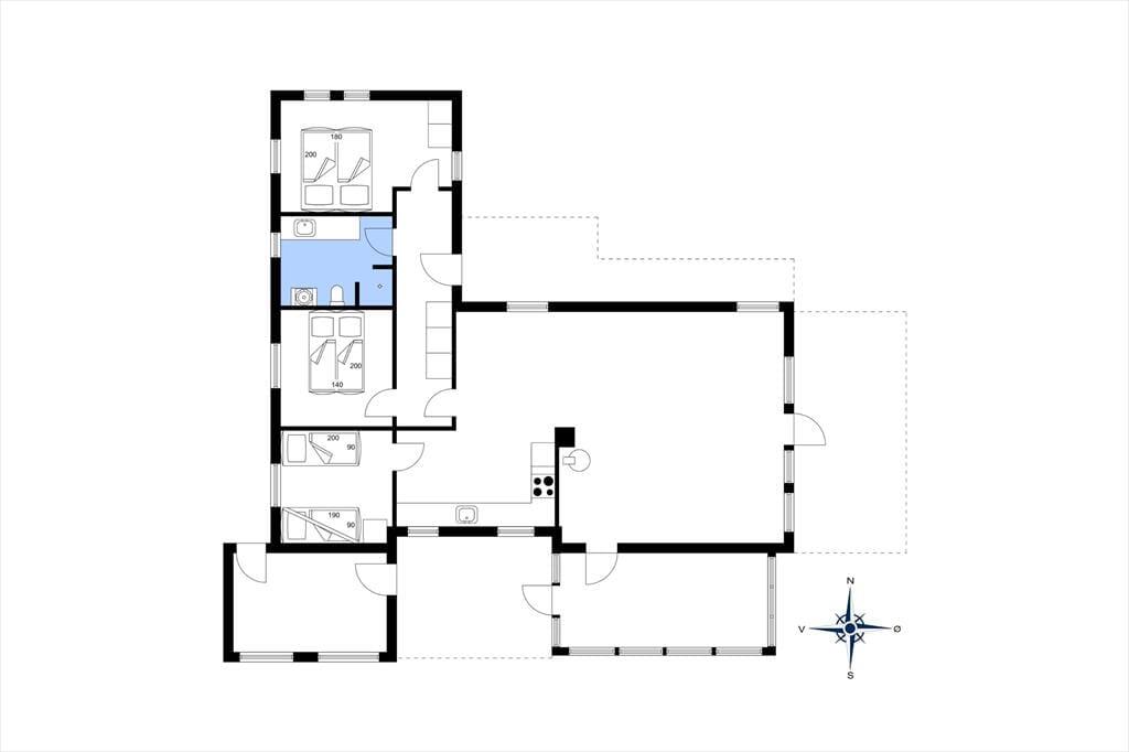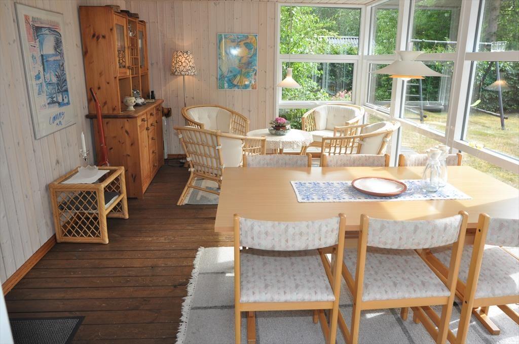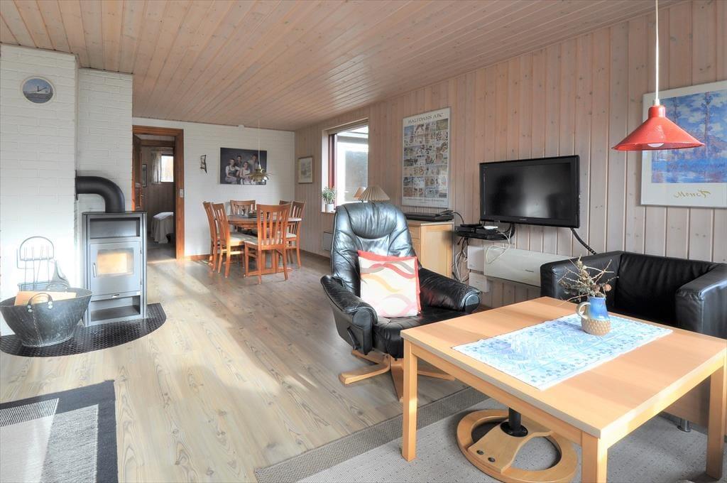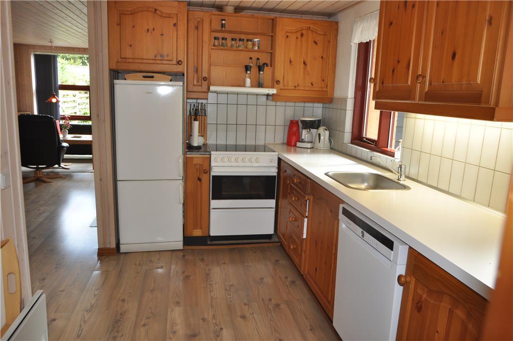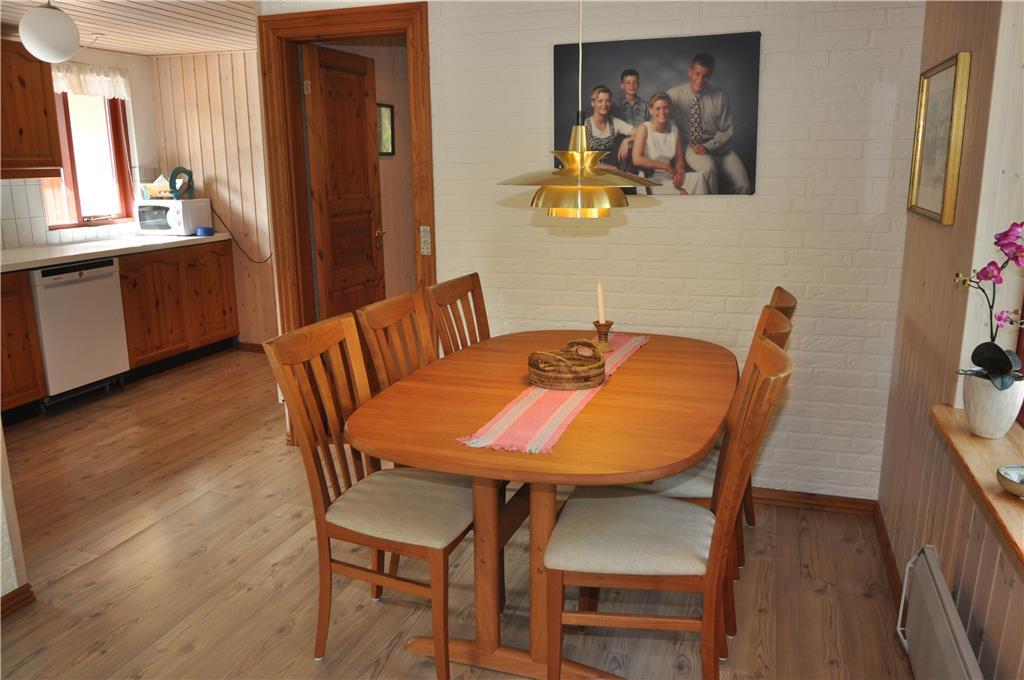 Træd ind i dette skønne feriehus hvor der er plads til hele familien og selvfølgelig også to hunde. Sæt jer godt til rette i de dejlige sofamøbler og nyd en afslappende stund i den skønne stue, eller giv jer i kast med et lækkert aftensmåltid i det skønne køkken der ligger I åben forbindelse med spiseafdeling og opholdsstue, på den måde kan I være sammen på trods af at I laver forskellige ting. Fra opholdsstuen er der udgang til en dejlig udestue mod sydvest, her kan I nyde solens varme, og når dagen synger på sidste vers, kan I nyde den smukke solnedgang fra udestuen.