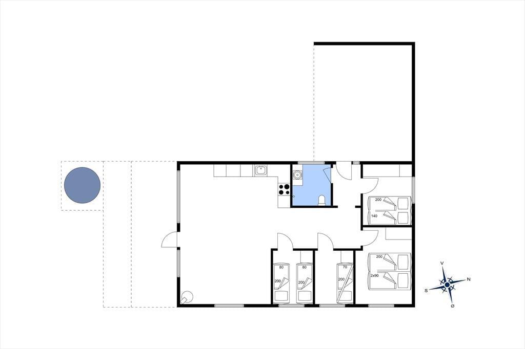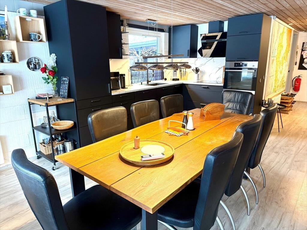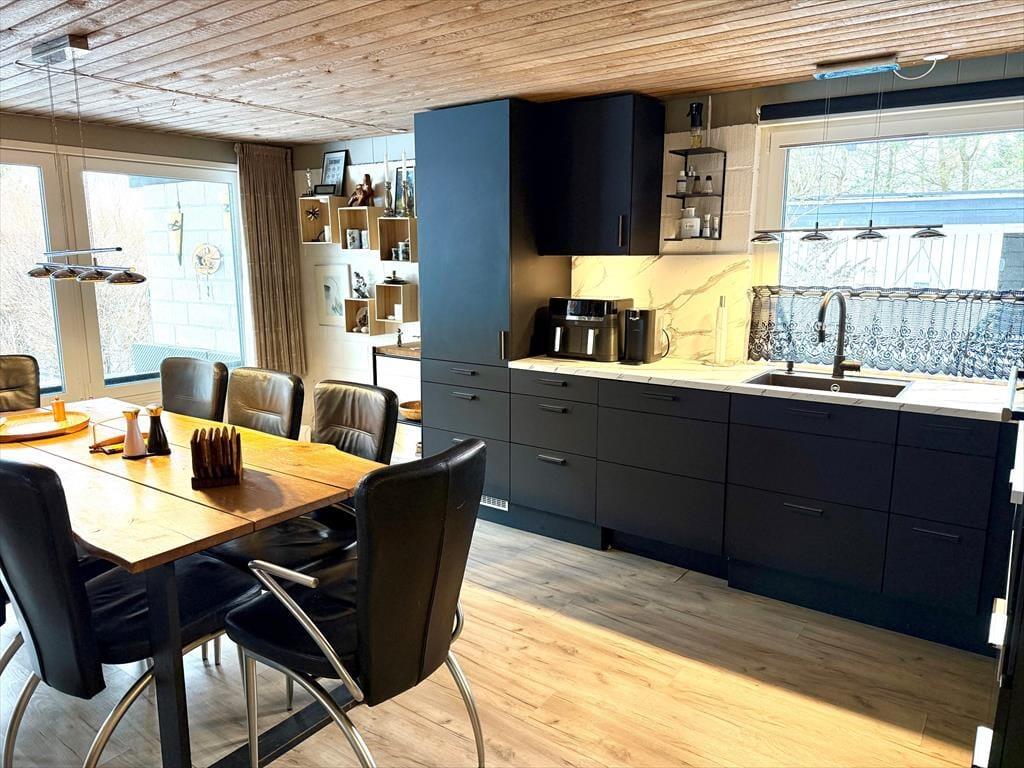 Køkkenet ligger i åben forbindelse med stuen, så I nemt kan hygge jer med madlavningen, mens samtalen fortsætter med dem, der slapper af i opholdsrummet. Køkkenet er veludstyret med både airfryer, Quooker og røremaskine, så hverdagen – og ferien – bliver lidt ekstra nem og komfortabel. Sommerhuset indbyder kort sagt til afslapning og nærvær – uanset årstid.