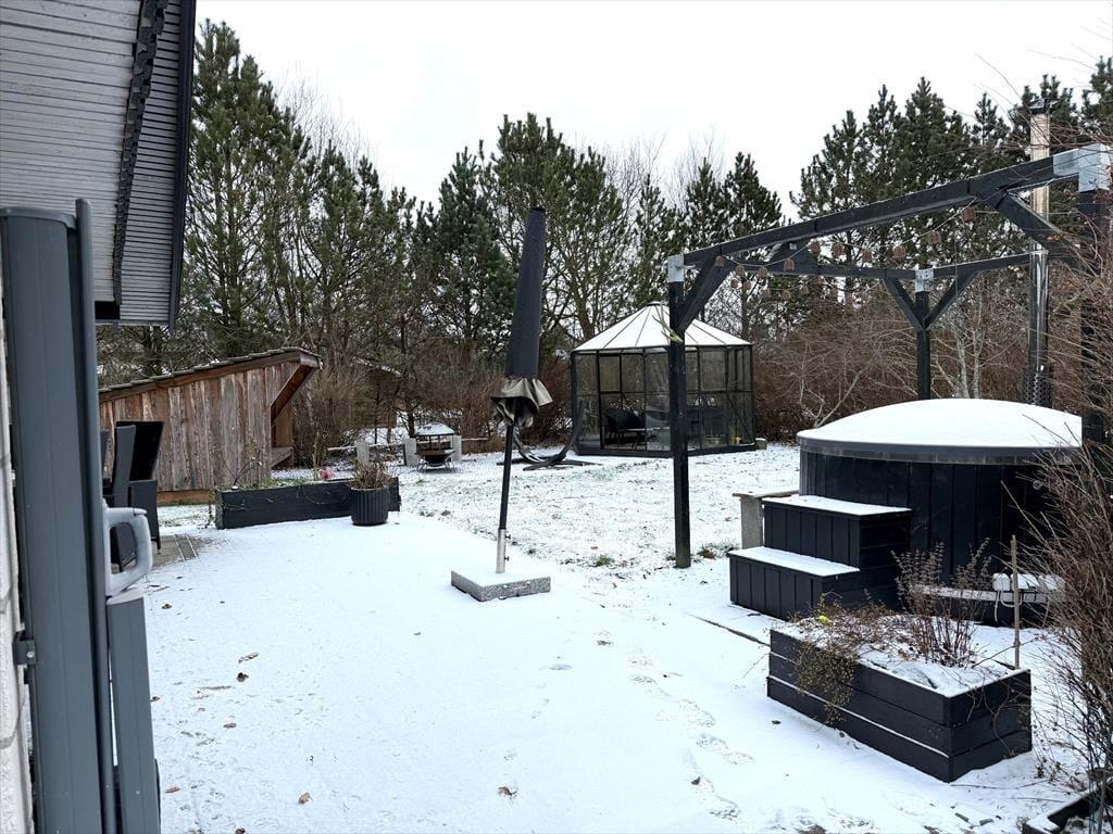 Ønsker I ekstra forkælelse, kan I sænke tempoet i husets vildmarksbad uden klor. I haven finder I både en hængekøje samt en lille shelter med tilhørende bålsted/grill, hvor der er rig mulighed for hyggelige aftener med mad over bålet. På de lune sommeraftener kan dagen forlænges i husets orangeri, som skaber en stemningsfuld ramme om aftenen.
