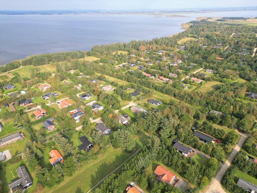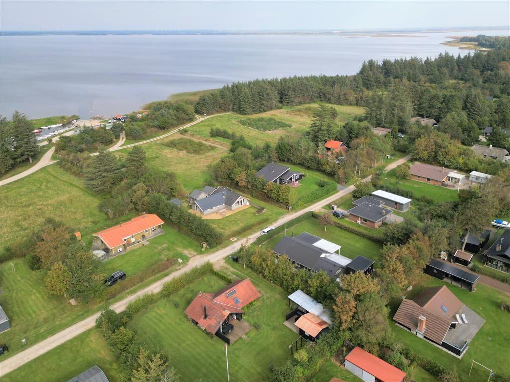 Sommerhuset ligger kun 200 m fra fjorden. Så her er i altså helt tæt på det skønne vand og kan hurtigt tage et smut ned derned og benytte den finde badebro, til en forfriskende dukkert. Her finder I også en lille dejlig sandstrand, hvor i kan nyde solen varme stråler og den fantastiske natur, som omkranser fjorden. Her har du rig mulighed for at tage på opdagelse, enten på cykel eller med vandreskoene på. Vil I ud til det smukke brusende Vesterhav, så er der heller ikke langt, da det ligger kun 4750 m fra huset. Hvis der skal ske lidt mere, er der mulighed for at besøge f.eks. forlystelsesparker, Jyllands Park Zoo eller de lokale museer.