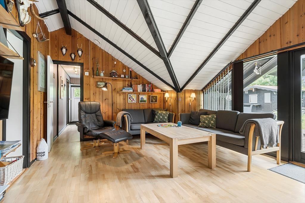 Nyd din næste ferie i dette super charmerende sommerhus, der oser af ægte dansk hygge. Sæt dig ned ved den varme brændeovn og lyt til dens knitrende lyde med en god kop kaffe. Her er der plads til at trække stikket fra den hektiske hverdag og komme helt ned i gear. Nyd f.eks. den gode udsigt I har fra huset igennem det store lækre vinduesparti, som samtidig giver en fantastisk belysning i huset. I kan alle være samlet i det store stue-køkken område på en gang og nyde hinandens selskab. Trænger I på et tidspunkt til at trække jer og have en stille stund alene, er husets fine værelser helt oplagte at bruge til det.