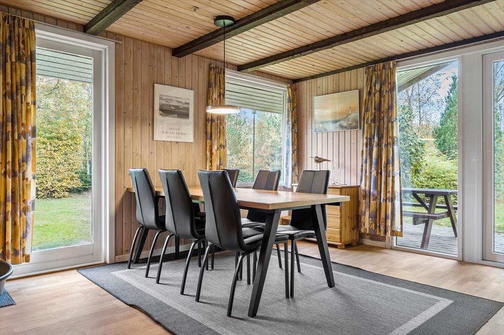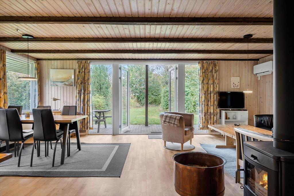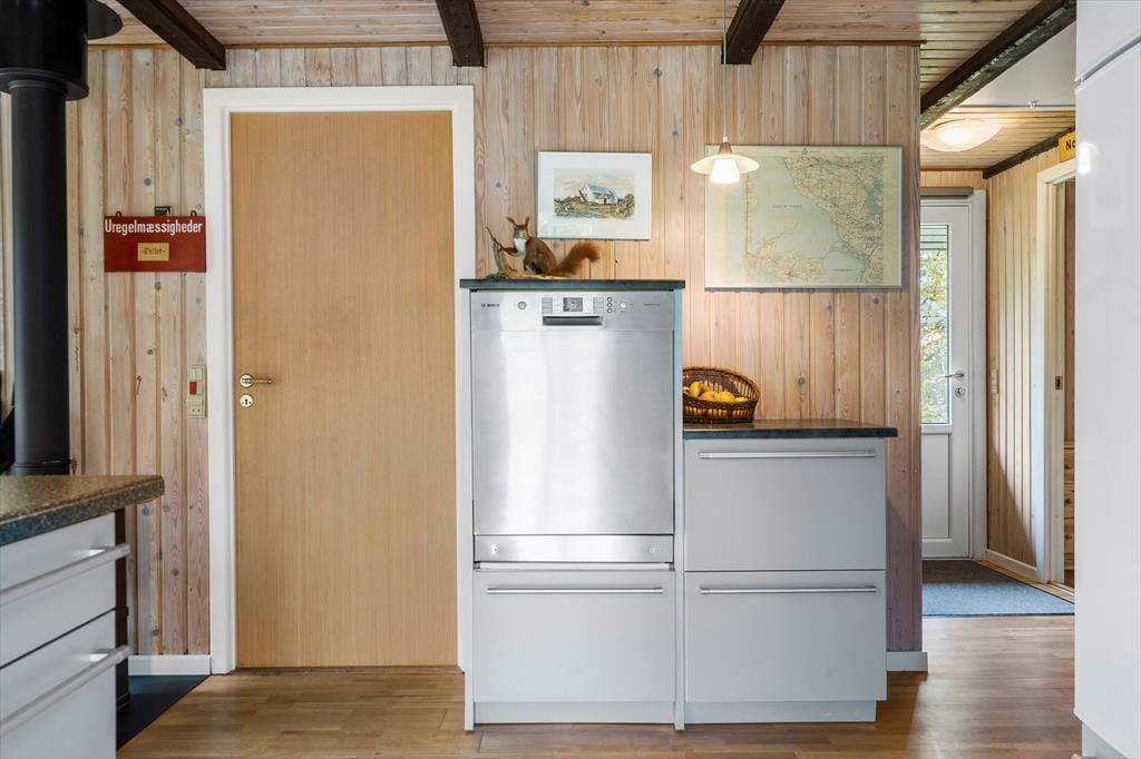 Velkommen indenfor i dette skønne og moderne feriehus, her kan I nyde en skøn ferie med en masse hyggelige stunder hvor hele familien er samlet. Det skønne køkkenalrum giver jer en fantastisk atmosfære i det skønne feriehus, det betyder nemlig at I kan være sammen på trods af at I laver forskellige aktiviteter, nogle kan lave et lækkert let frokostmåltid imens snakken flyder med dem som sidder på de dejlige barstole, andre kan nyde en kold sodavand ved spisebordet og andre kan se en god film i fjernsynet, ja mulighederne er mange.