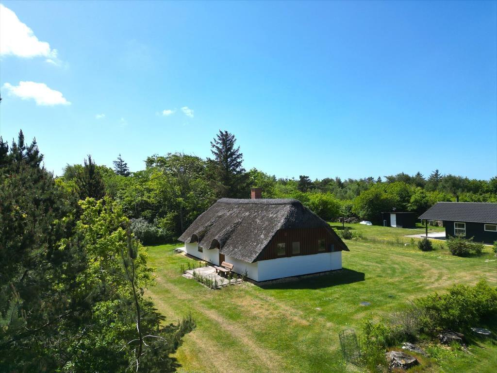 Når I træder ind i dette charmerende sommerhus med klassisk stråtag, mødes I af en rolig og hjemlig stemning, der inviterer til afslapning fra første øjeblik. Det naturlige, de bløde farver og det lyse interiør skaber ægte sommerhusidyl – her er det nemt at koble helt fra og lade hverdagen blive hjemme.
