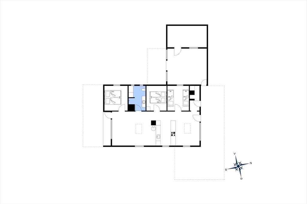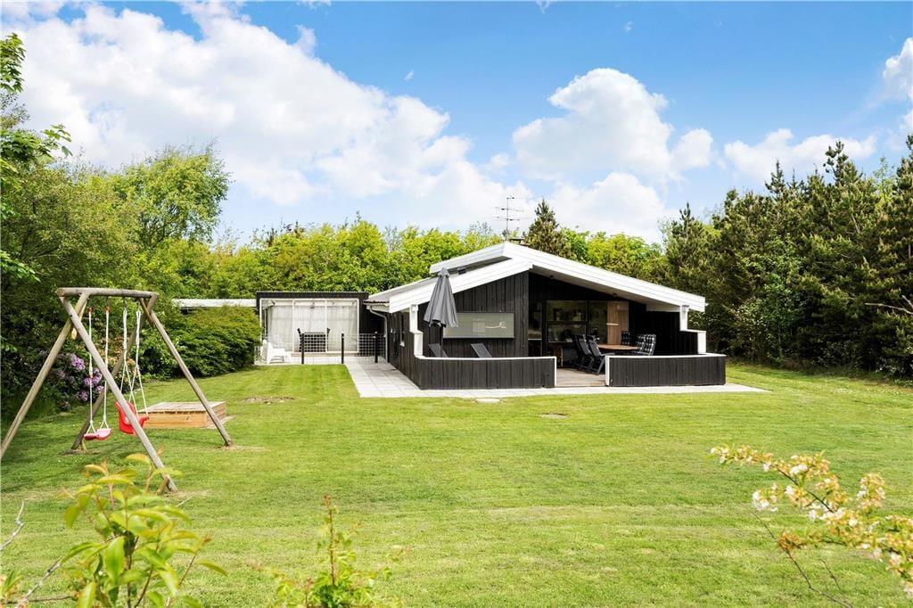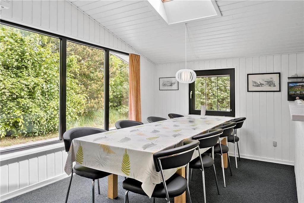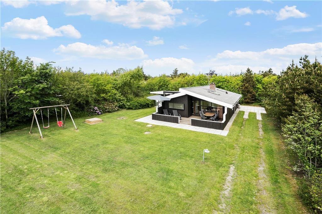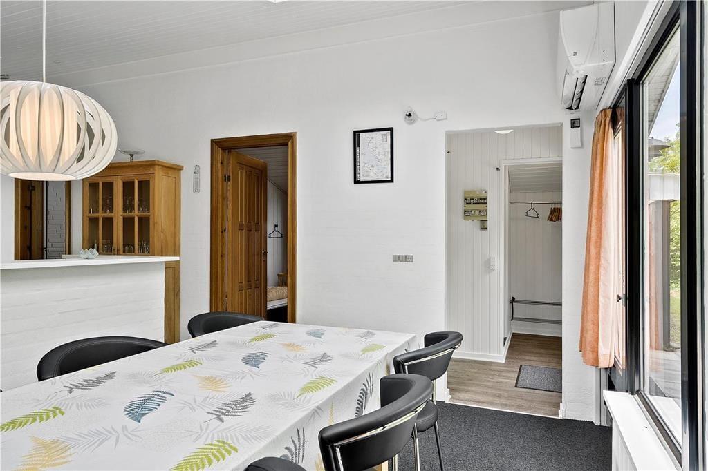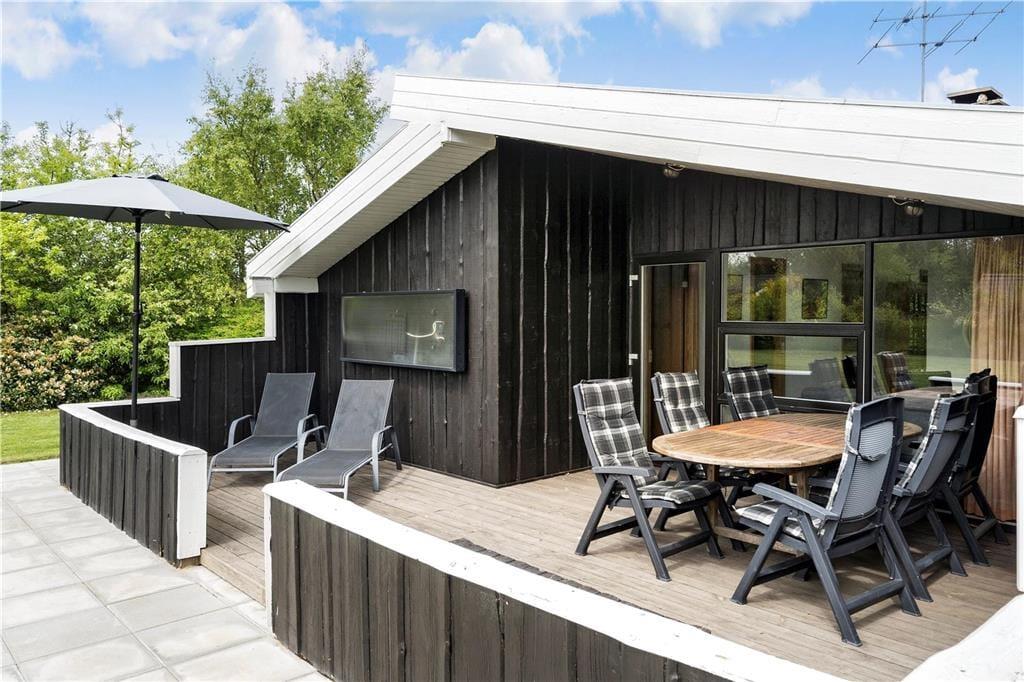 Hyggeligt lyst træferiehus hvor I hurtigt vil kunne skabe den perfekte feriestemning, I kan tage hele familien med, og her er plads til jer alle sammen. Efter en lang dag med en masse aktiviteter kan I smide benene op i sofaen, og skabe en hjemme biograf. I kan have kontakt til hele familien i hele huset, fra halvmuren i køkkenet. Tænd op i brændeovnen når I har brug for ekstra hygge, eller kulden bevæger sig indenfor, og nyd udsigten til de skønne flammer, og varmen der bevæger sig rundt i huset.