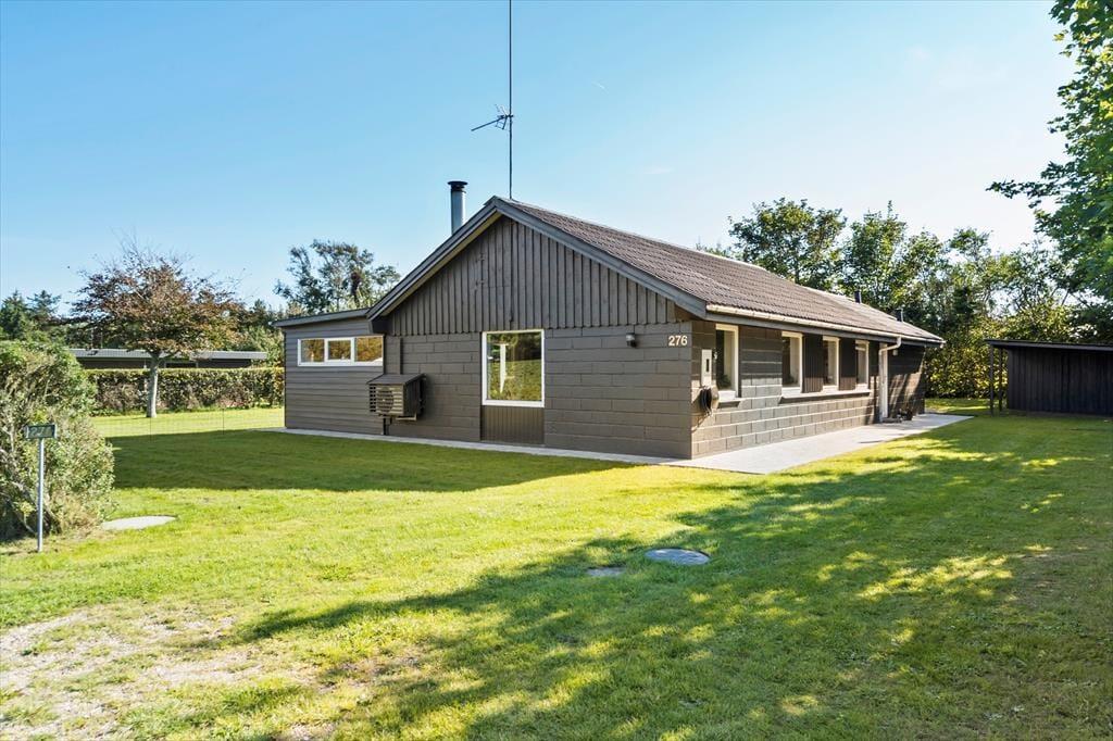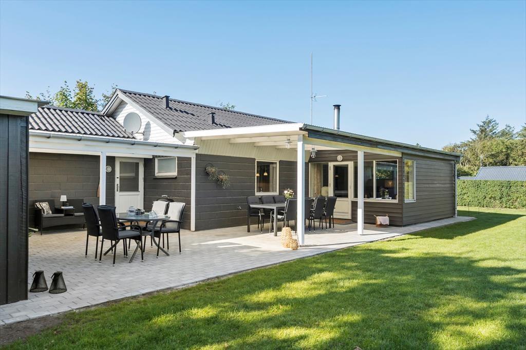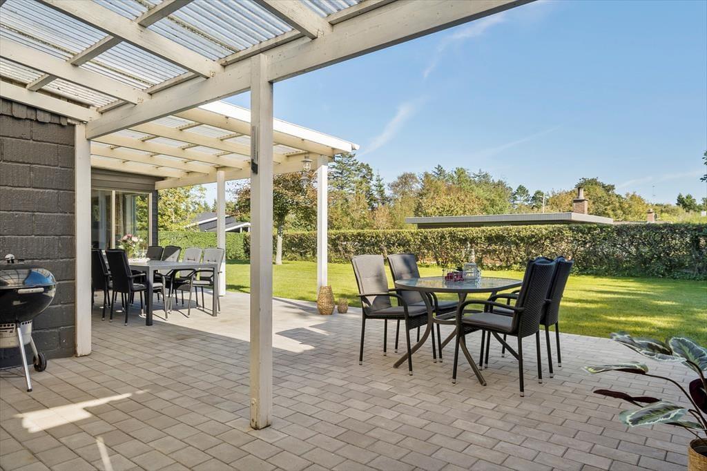 Dette skønne sommerhus er beliggende på en dejlig grund, omkranset af store træer, som både giver læ og skaber en ugeneret atmosfære på terrassen. Her kan du nyde afslappende stunder i fredelige omgivelser.